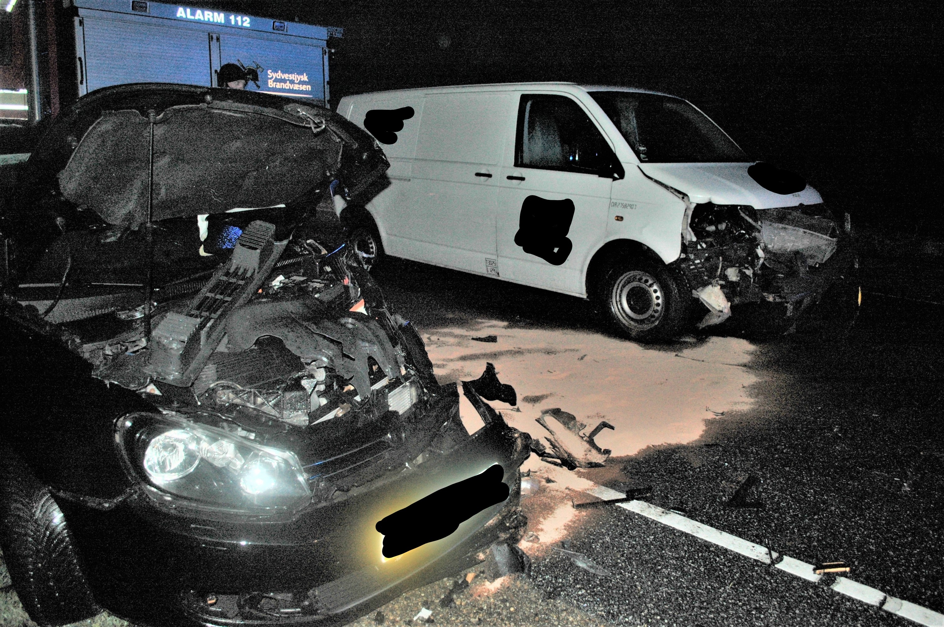 Bilerne blev stærkt beskadiget ved sammenstødet.