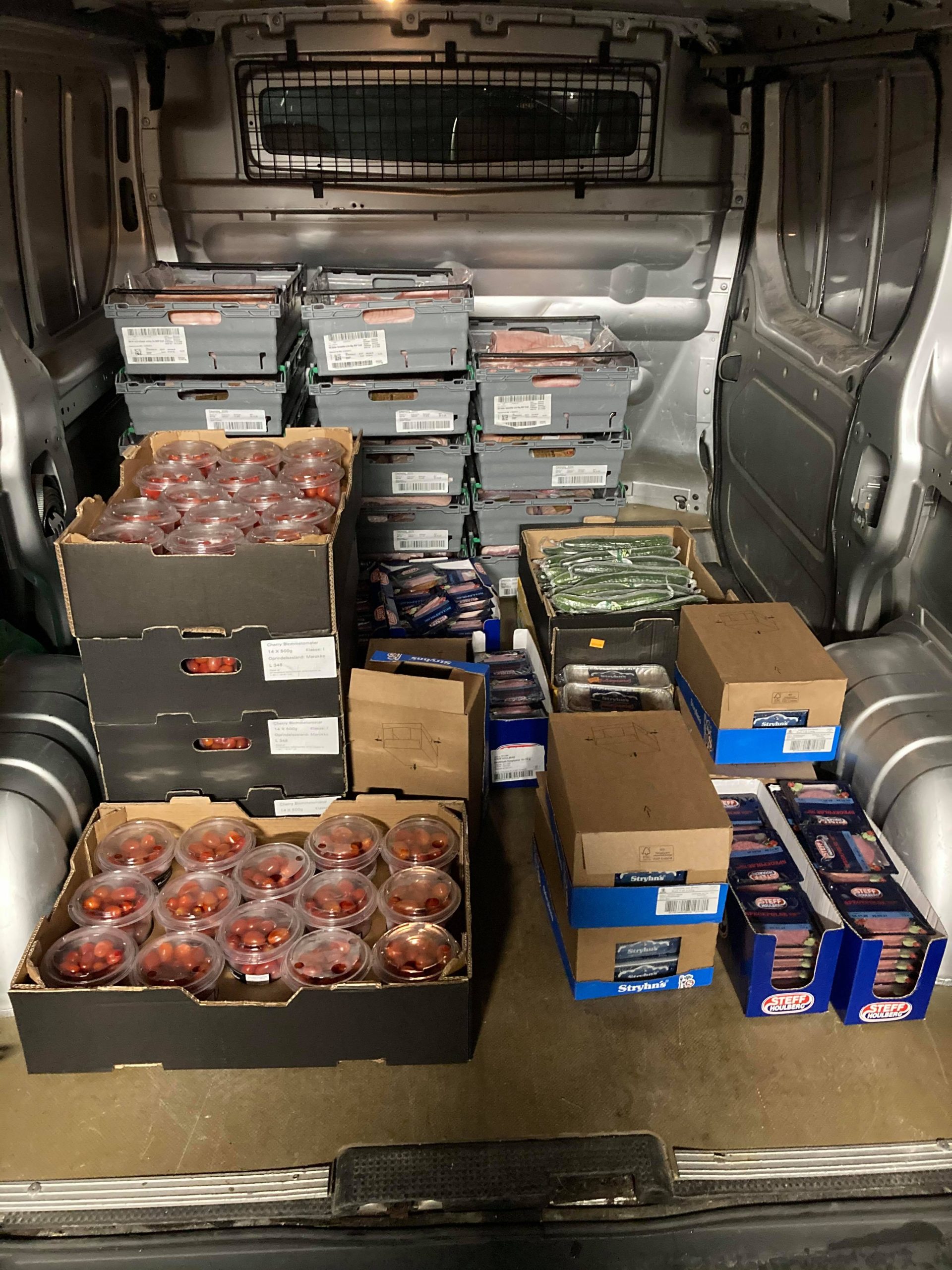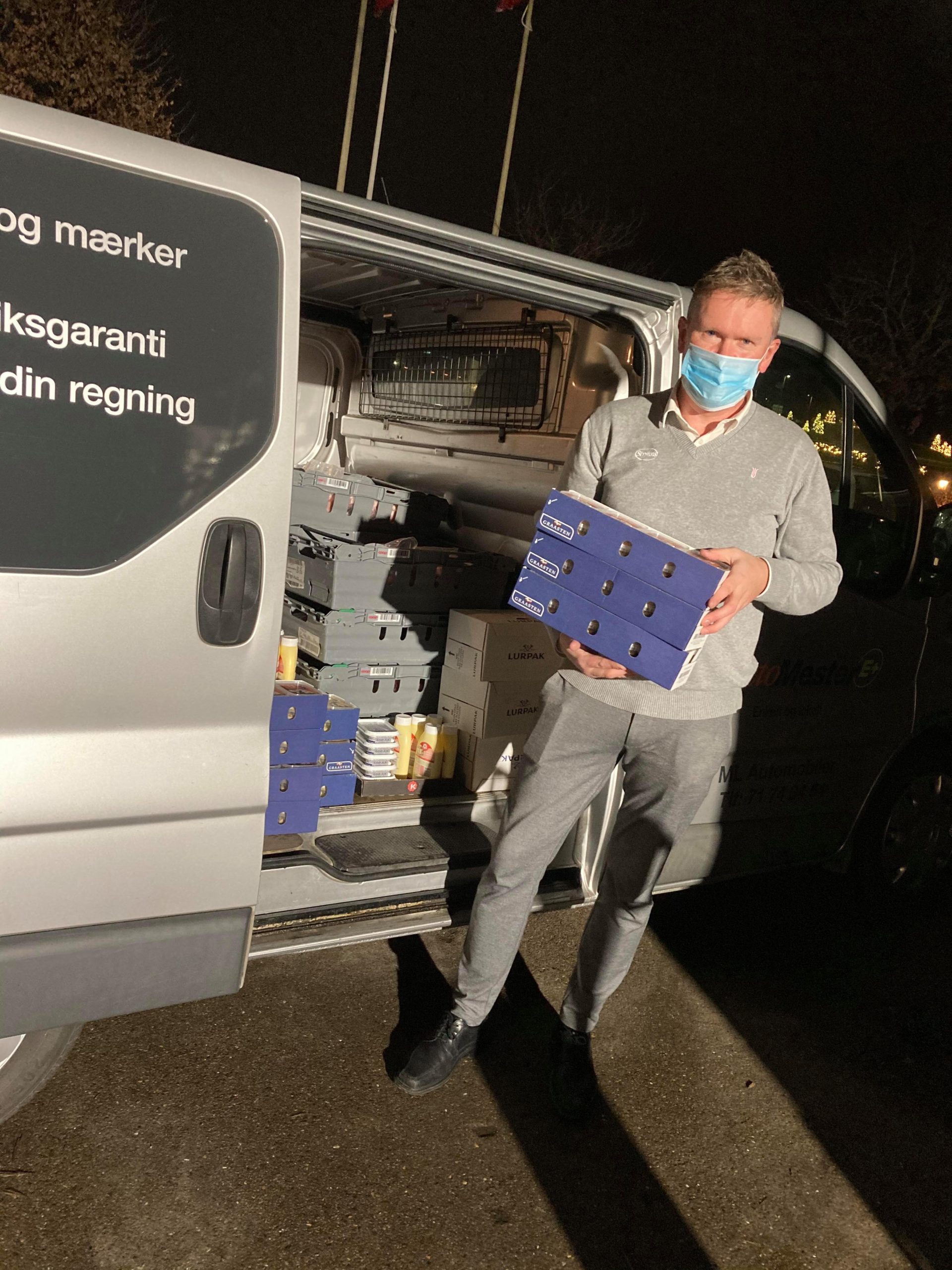AutoMester i Bramming stillede en varevogn til rådighed for udbringningen af julegaver og poser – og et lokalt firma, som ønsker at være anonym, lagde lokaler / fryserum til løsningen af de mange opgaver.