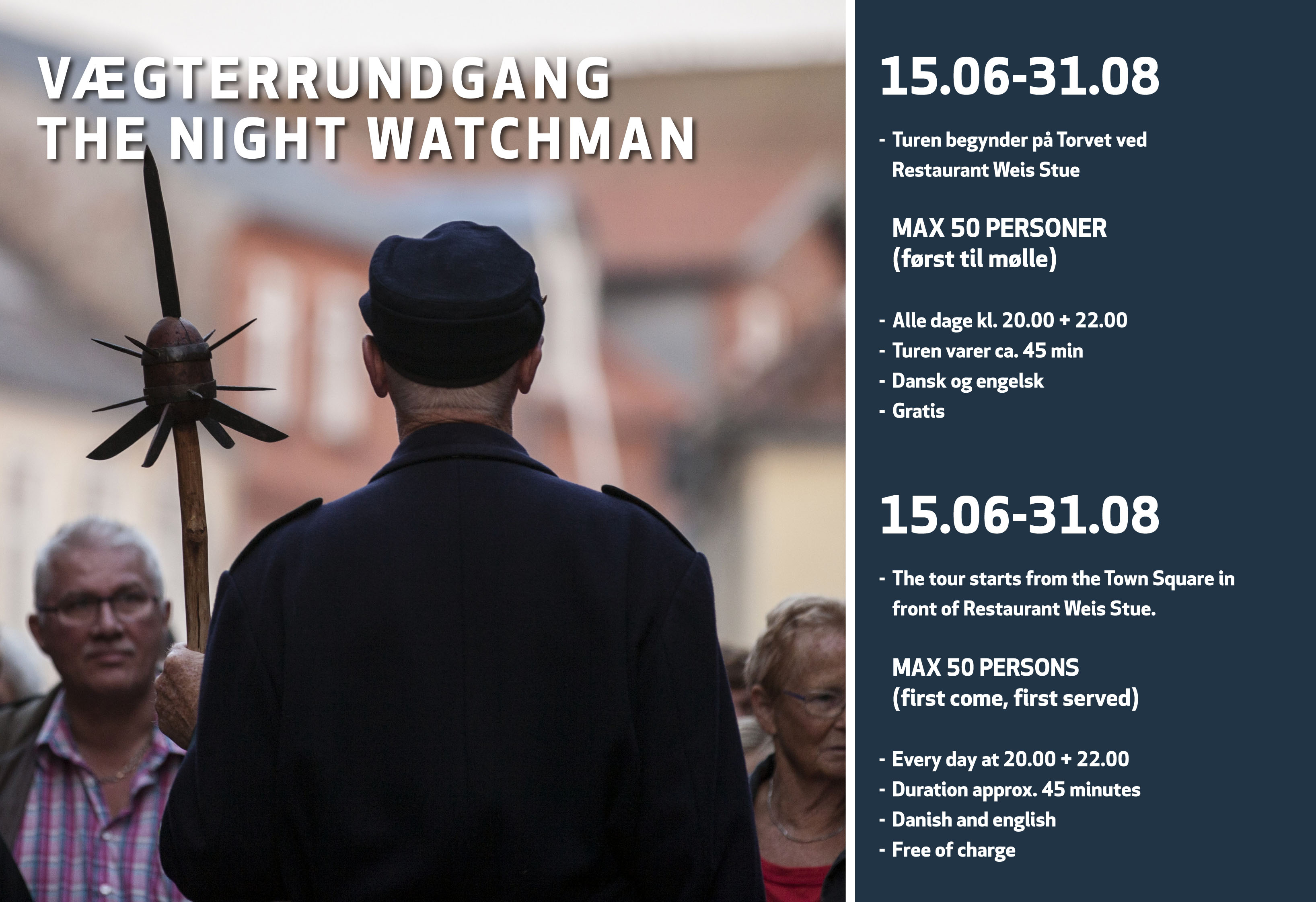 Marie Dalgas Warming, der er turisme-medarbejder hos Business Esbjerg, kan fortælle at den første offentlige guidetur var i dag mandag, og nu kan vi se frem til at vægterturene snart starter op igen, det gør de nemlig den 15. juni.