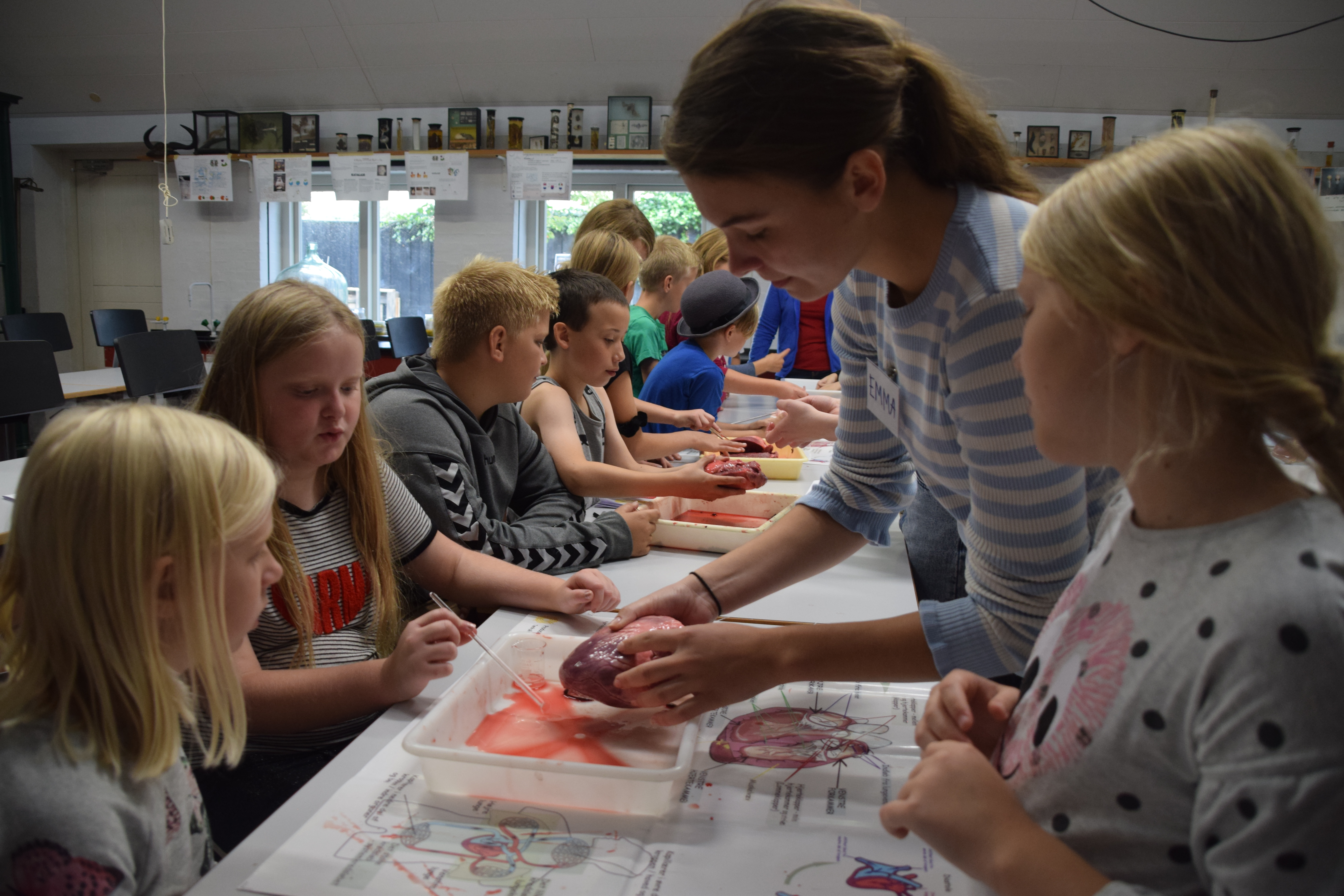 Et par af eleverne fra folkeskolen rynkede lidt på næsen, da de blev præsenteret for en rigtig svinelunge, der ligner den menneskelige lunge, blot er den lidt større. Og der blev lagt kræfter i, da eleverne blev lovet et kilo chokolade, hvis de via et rør kunne puste lungen så meget op, at den gik i stykker. Skolen beholdt chokoladen.