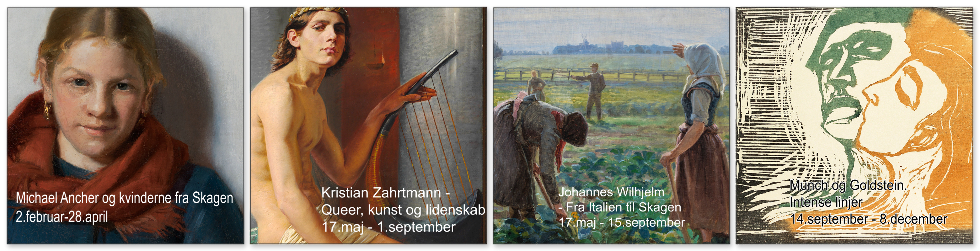 Herpå følger en udstilling fra d. 17.maj om maleren Kristian Zahrtmann set fra et ’queer’-perspektiv på førstesalen samt en udstilling om den indtil nu ukendte skagensmaler Johannes Wilhjelm i underetagen.