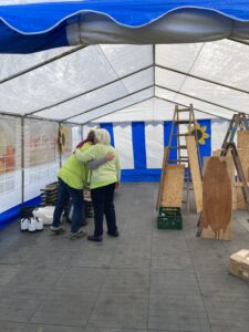 Bagerst på pladsen finder vi KFUM-spejderne Ribe-Hviding som har karrusel, hoppeborg, gavequiz, varme smil og gode tanker om hvordan de kan hjælpe til med de overskud, der nu er.
