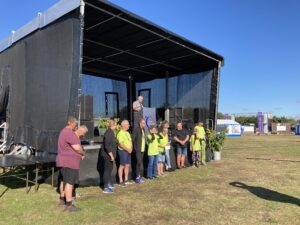 I informationsteltet ved siden af er der en hel lille central, hvor tilmelding m.m. finder sted. Det er også her der holdes styr på PR og kommunikation og på hvor mange penge, der triller ind på kontoen i den gode sags tjeneste. Det er bl.a. Dorte Strøyberg, Preben Madsen, Metha Dehn og Betty Madsen, der styrer slaget her. Uden for møder vi Morten Topholm, der er formand for det hele dvs. styregruppen. Han fortæller at det er 6. gang der er Stafet for Livet i Ribe og at de tidligere år sammenlagt har indbragt 1.195.415 Kr. og Betty fra informationsteltet følger op med sit optimistiske håb om at der i år vil komme endnu flere penge ind end der plejer. Søndag viser det sig at der sættes rekord. Stafet for livet Ribe henter 350.000 kr. til kræftens Bekæmpelse.
