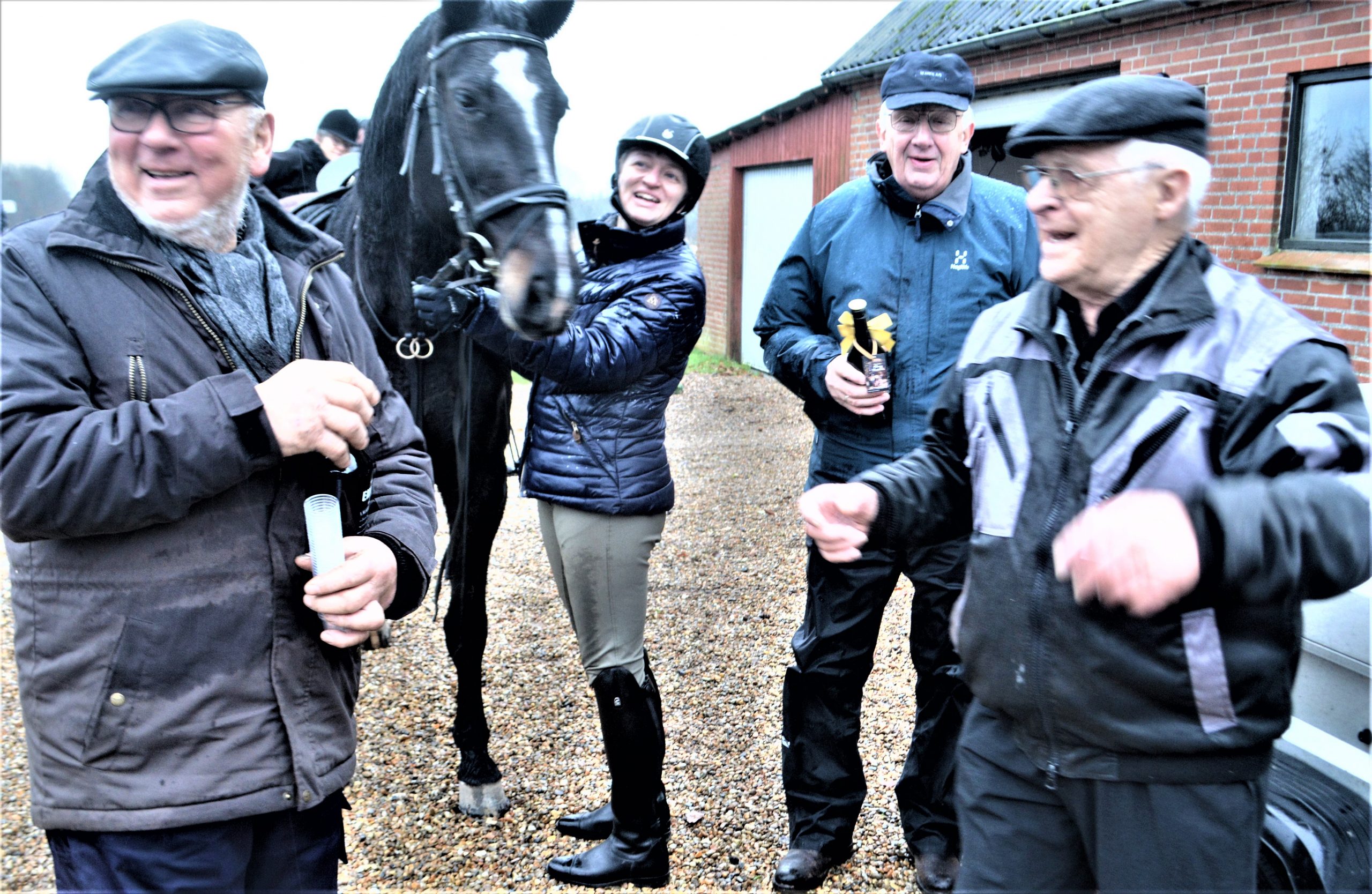 Egon Pedersen var slet ikke forberedt på det rykind af ryttere, men der blev dog både til en enkelt dram og nogle æbleskiver i gården, hvor Egon assisteret af Lise tog mod gæsterne. Og på behørig vis blev der sunget fødselsdagssang for fødselaren.