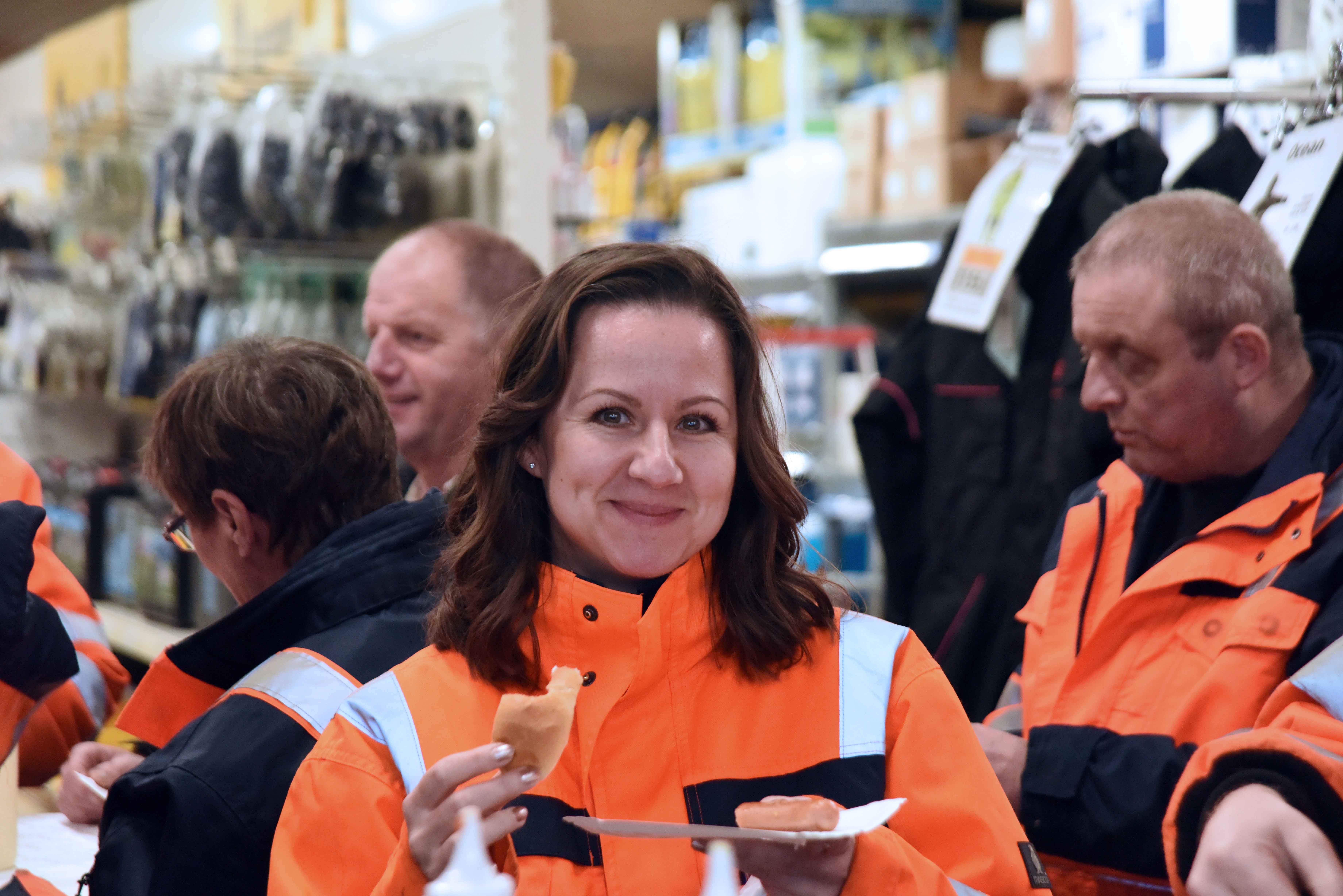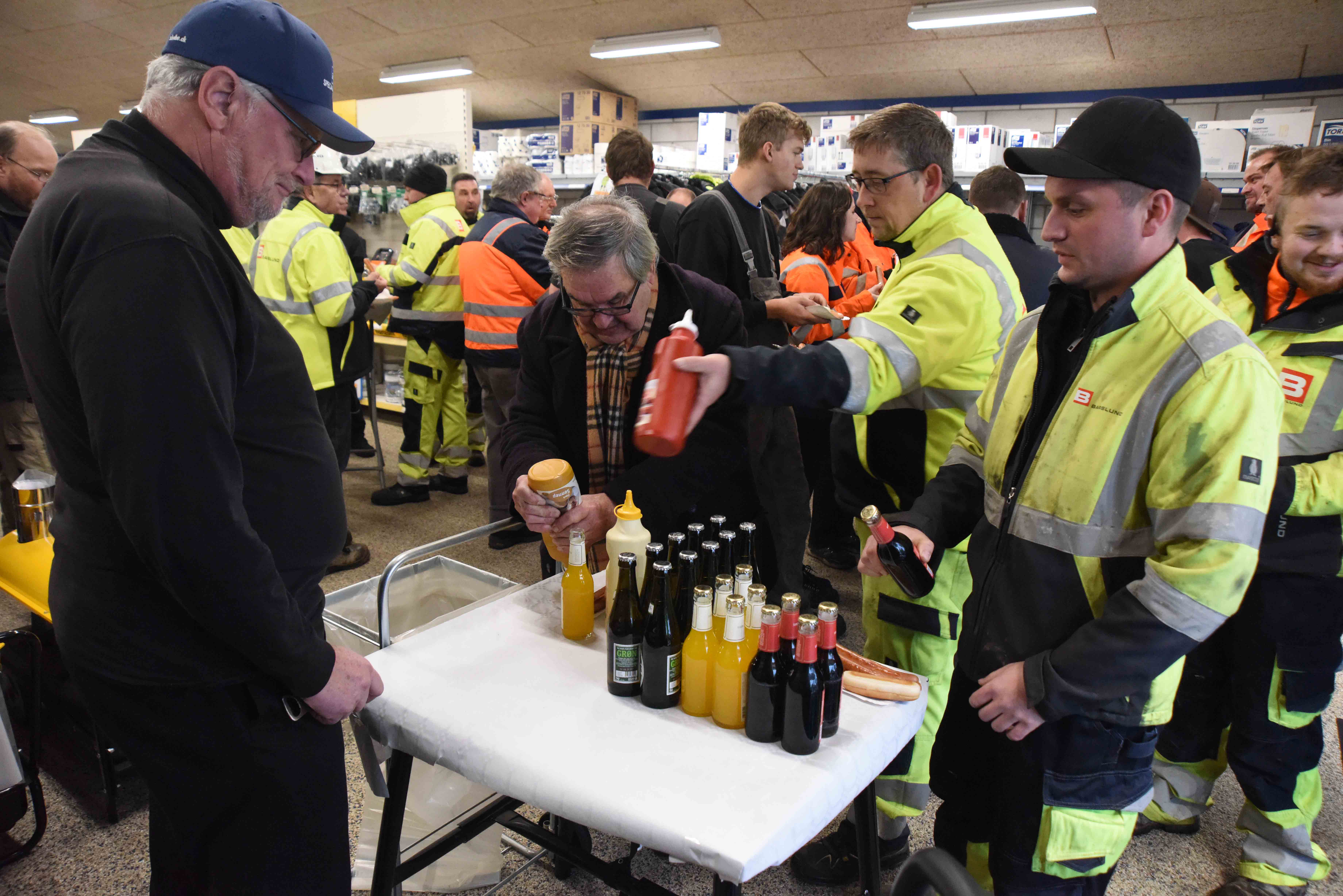En god fejring af dagen, og hyggeligt var det da også, at BARSLUND, der står for vejudvidelsen, også deltog omkring pølsevognen, og de gutter var ikke blege for at svare igen på en kvik bemærkning om arbejdet.