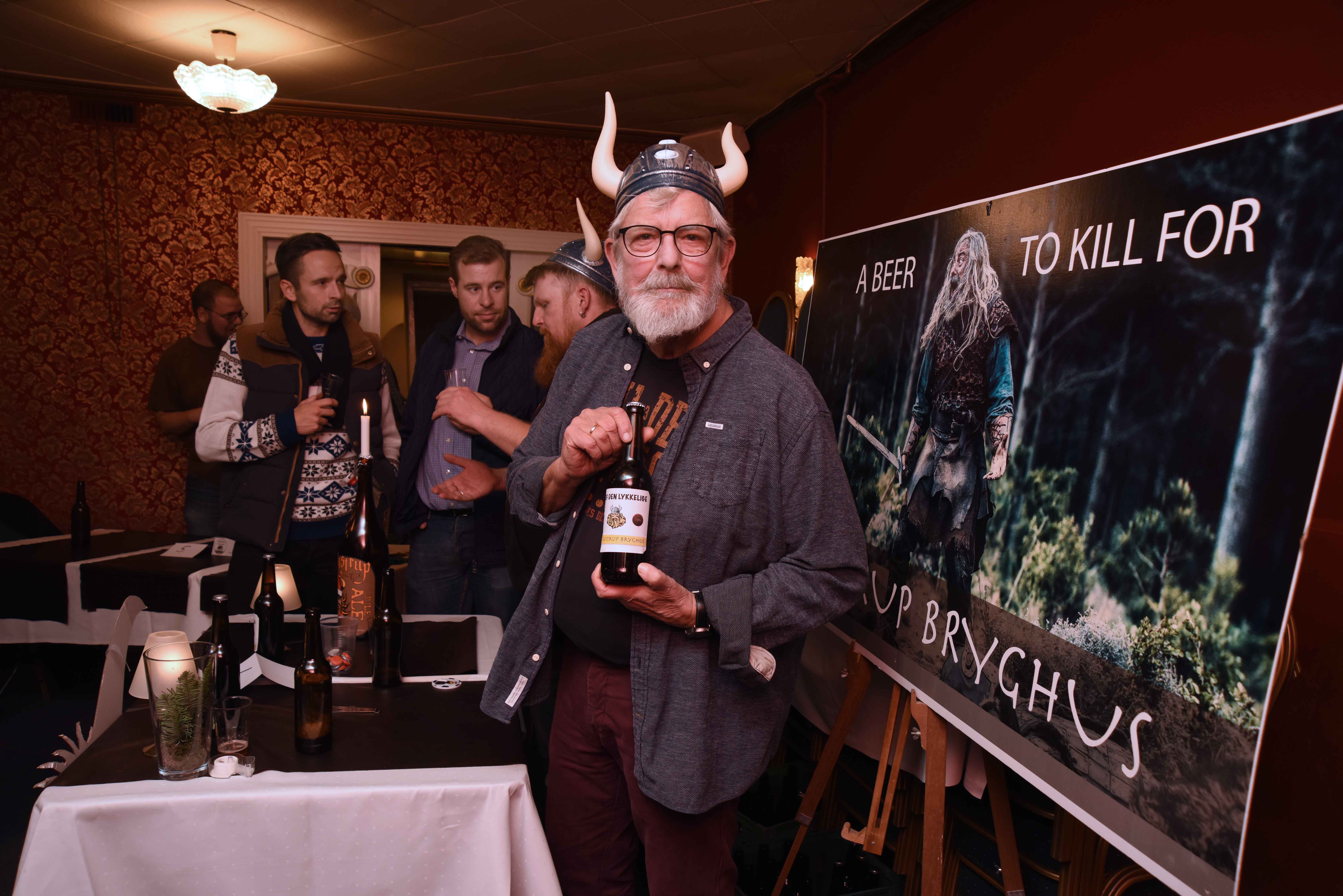 Benny Husted der stolt fortalte historien om plakaten med ordene ”A beer to kill for” bag Lustrup Bryghus.