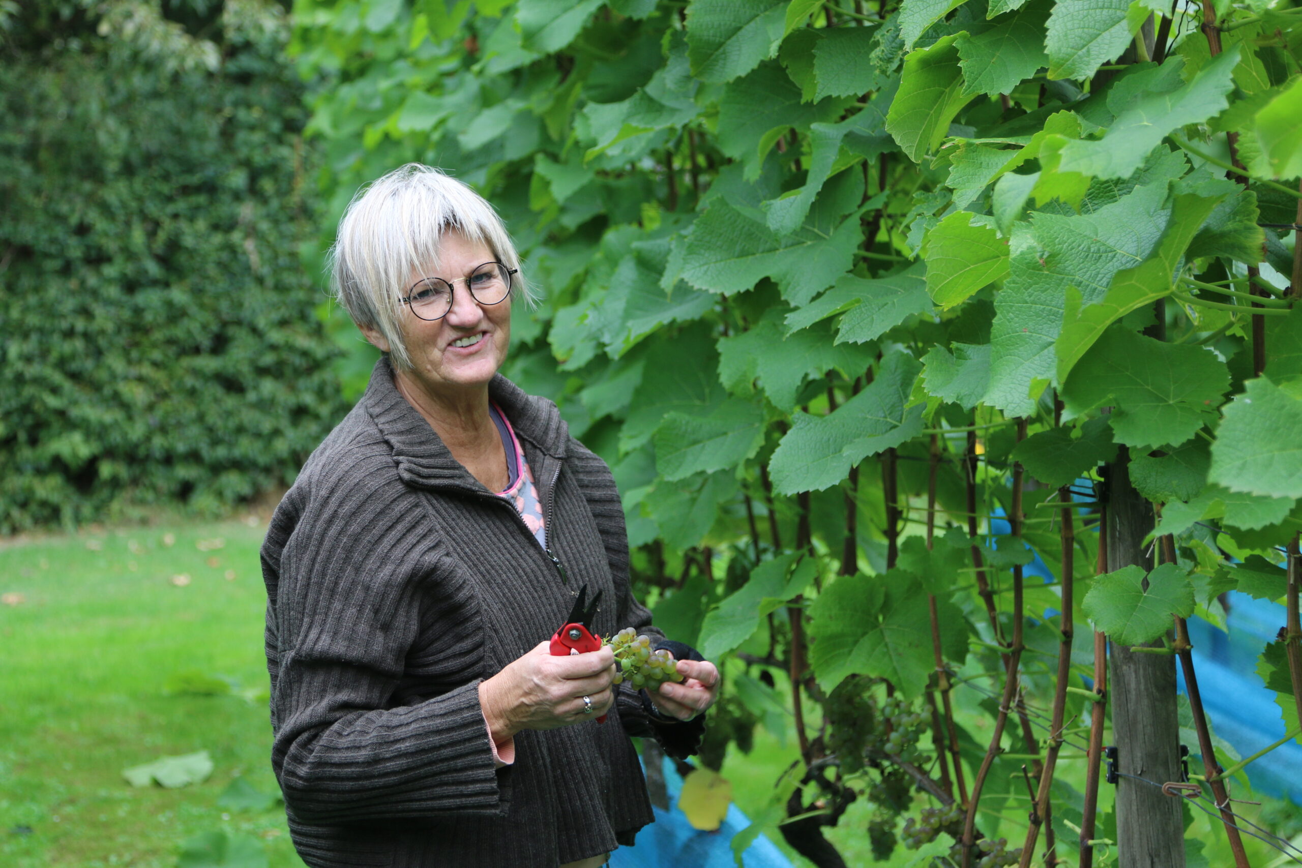 Imellem de lange rækker af vinstokke kan der høres en konstant klikkende lyd – og kort efter møder vi Bodil, som er i gang med at høste årets klaser til hvidvinen. – Prøv at se, hvor er de flotte siger hun, mens der fremvises en rigtig flot klase med Solaris druer. Bodil hjælper til i vinhaven, hvor Karl Johan nyder sin pensionist tilværelse, han repræsenterer også Kongeåens Vinavler Laug ud ad til. Bodil arbejder stadig i Blomsterhuset i Esbjerg – og mon ikke hun tager et par år endnu med de grønne fingre?