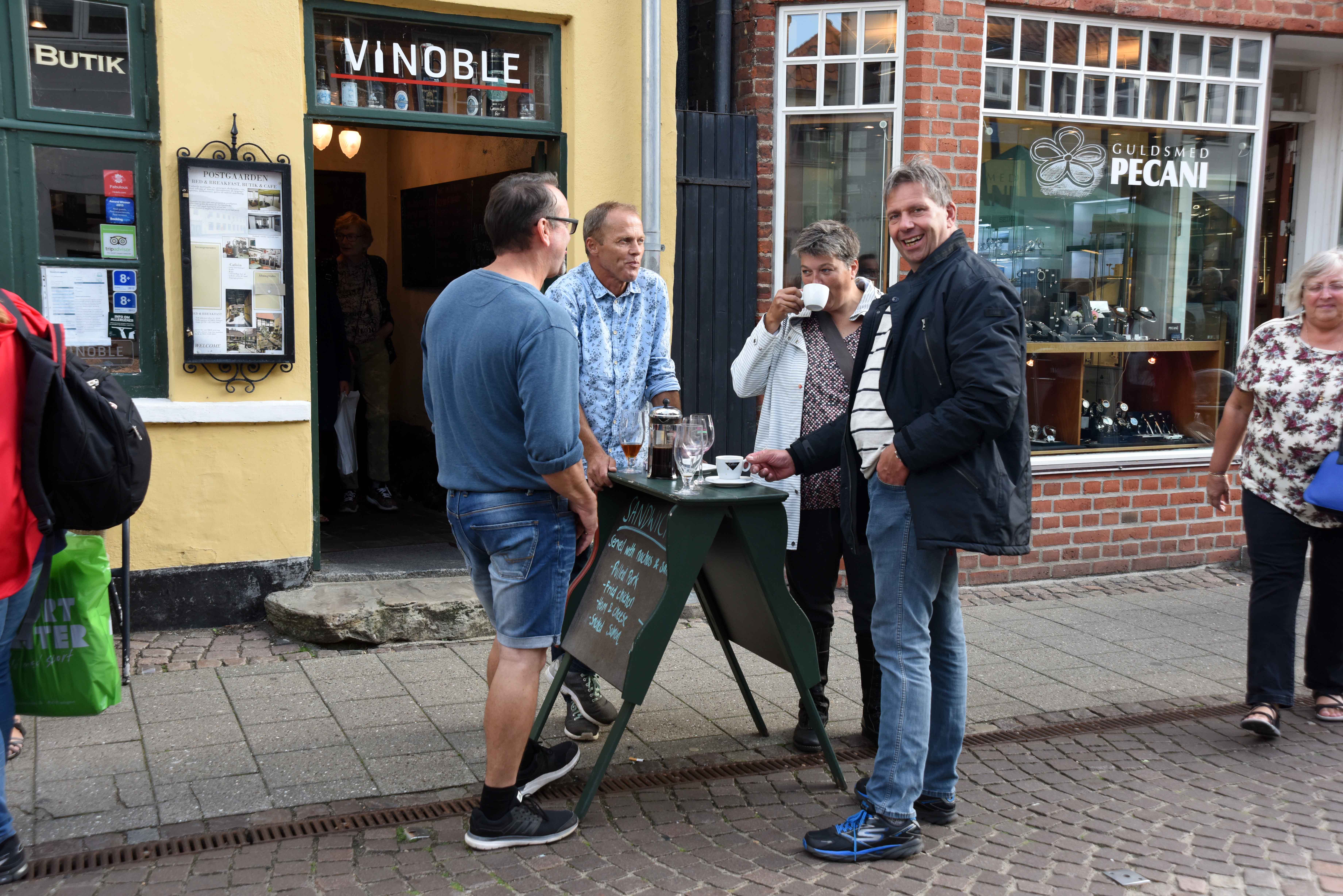 – ”Det er 9. år, at vi nu deltager i Ribe Vinfestival. På trods af at vor målgruppe ikke er salg til private er netop denne vinfestival attraktiv for os – både på grund af det lokale tilhørsforhold, men også selve afviklingen i Ribe´s flotte gader”, lyder det fra Kaj Kristensen som er en blandt mange forhandlere på Ribes gågade.