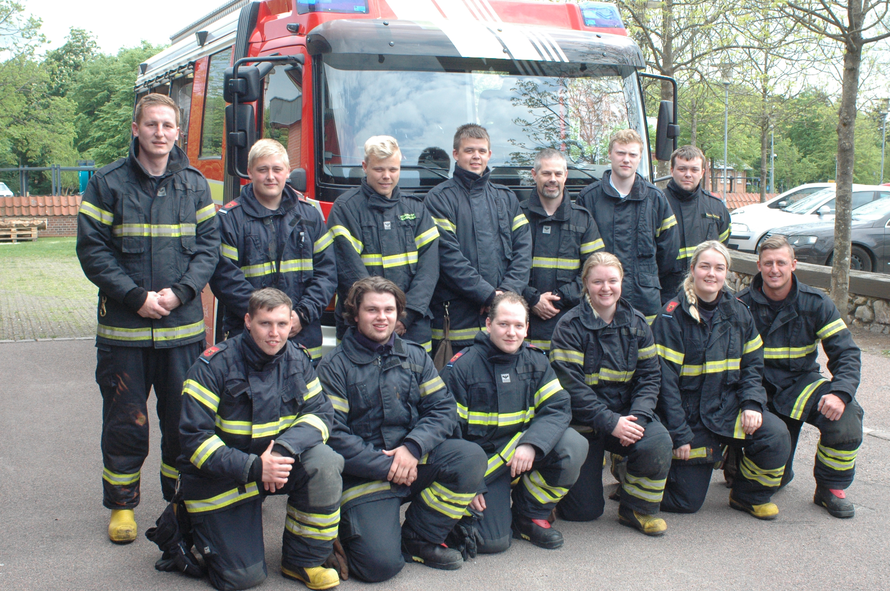 Baggrunden er, at et nyt hold brandmænd m/k er sprunget ud. 11 mænd og to piger fra Varde, Esbjerg og Ribe har været til eksamen i det, der hedder funktionsuddannelsen. Alle bestod, og det betyder, at de alle er fuldbårne brandmænd.