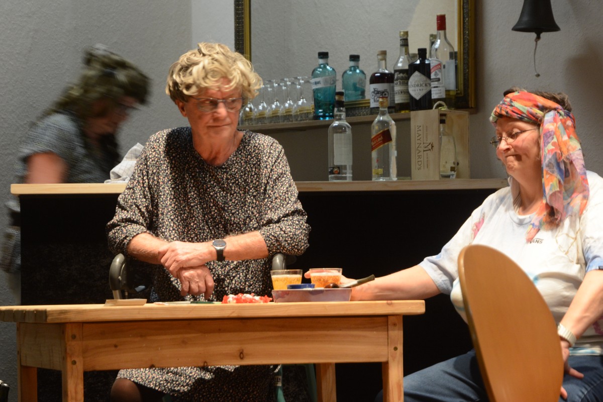 Amatørerne er i fuld gang med at indstudere skuespillet ”Alzheimer, adel og alkohol”