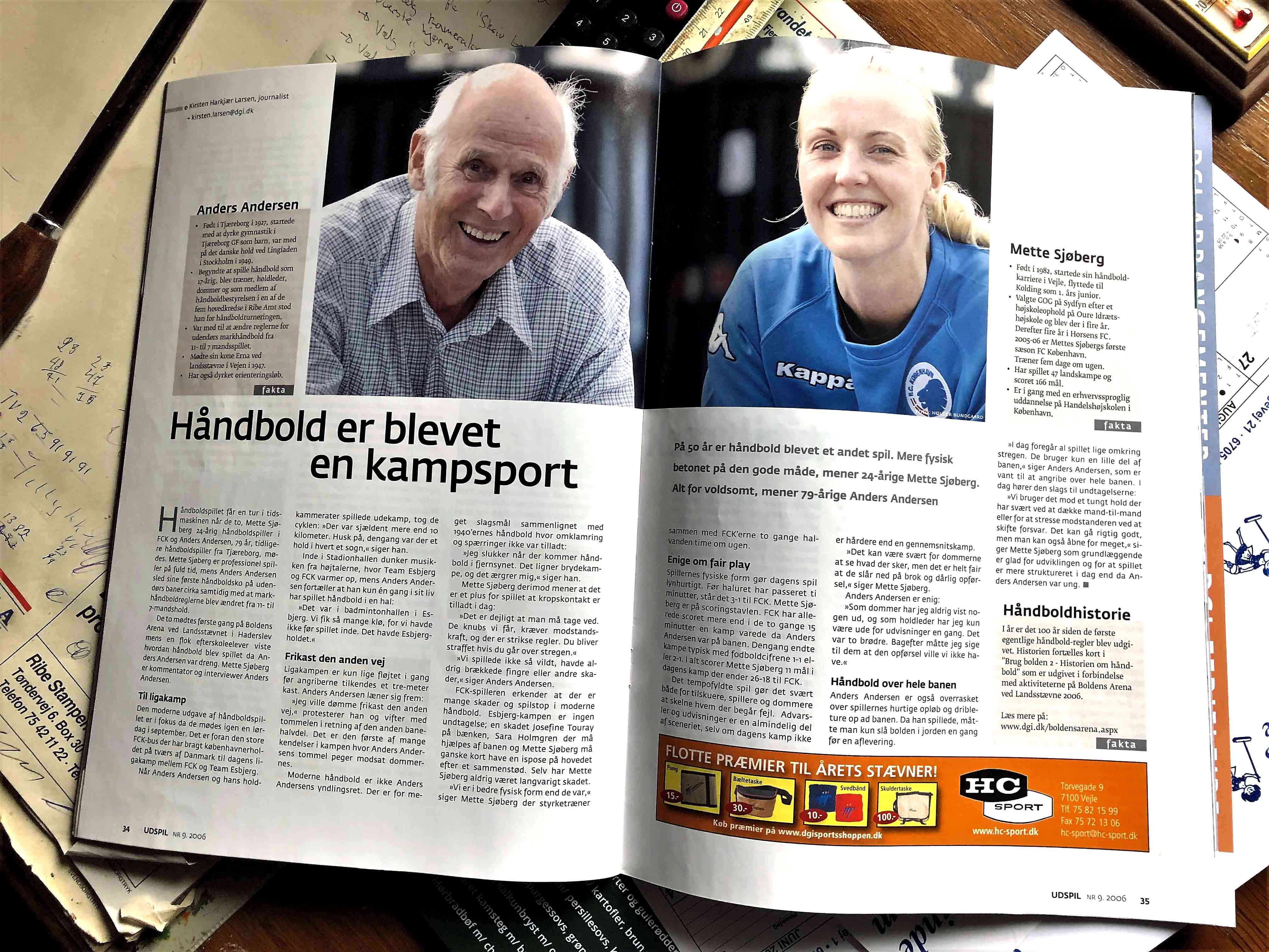 Allerede tilbage i 2006 optrådte Anders med sine holdninger i bladet ”UDSPIL” , hvor han under en kamp i Esbjerg kommenterede, mens en journalist tog notater. Det blev til en artikel, som skabte megen debat. Fra artiklen: “På 50 år er håndbold blevet et andet spil. Mere fysisk betonet, mener 24 årige Mette Sjøberg. Alt for voldsom, mener 79 årige Anders Andersen.”