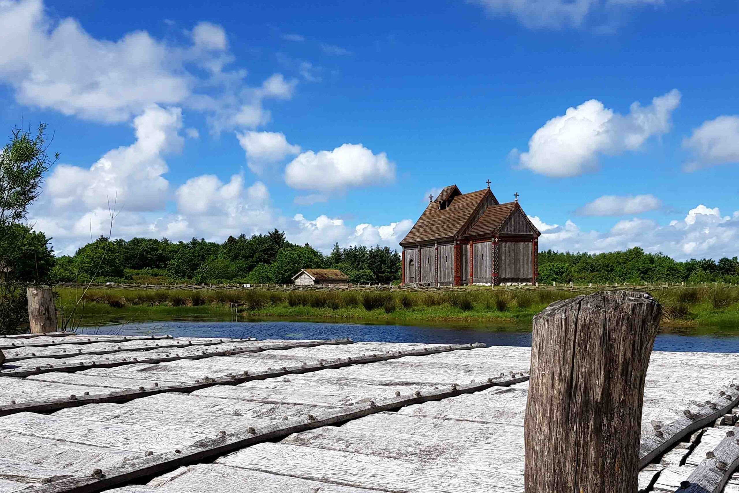 Kirken blev indviet i 2018 og er åben for besøgende i Vikingecentrets åbningstid.