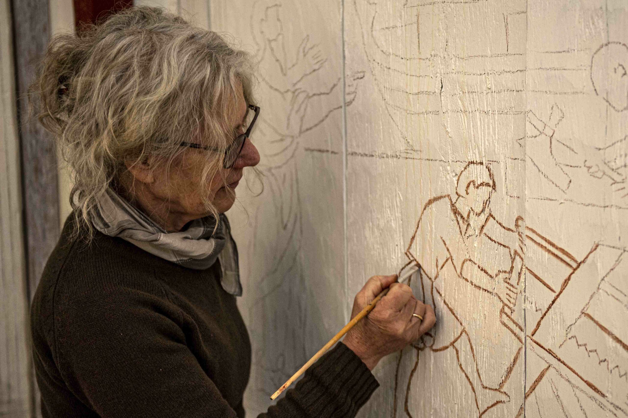 Arbejdet er så småt i gang, og målet er at genskabe et typisk, stemningsfuldt 800-tals kirkerum, hvor billederne taler ud fra væggene.