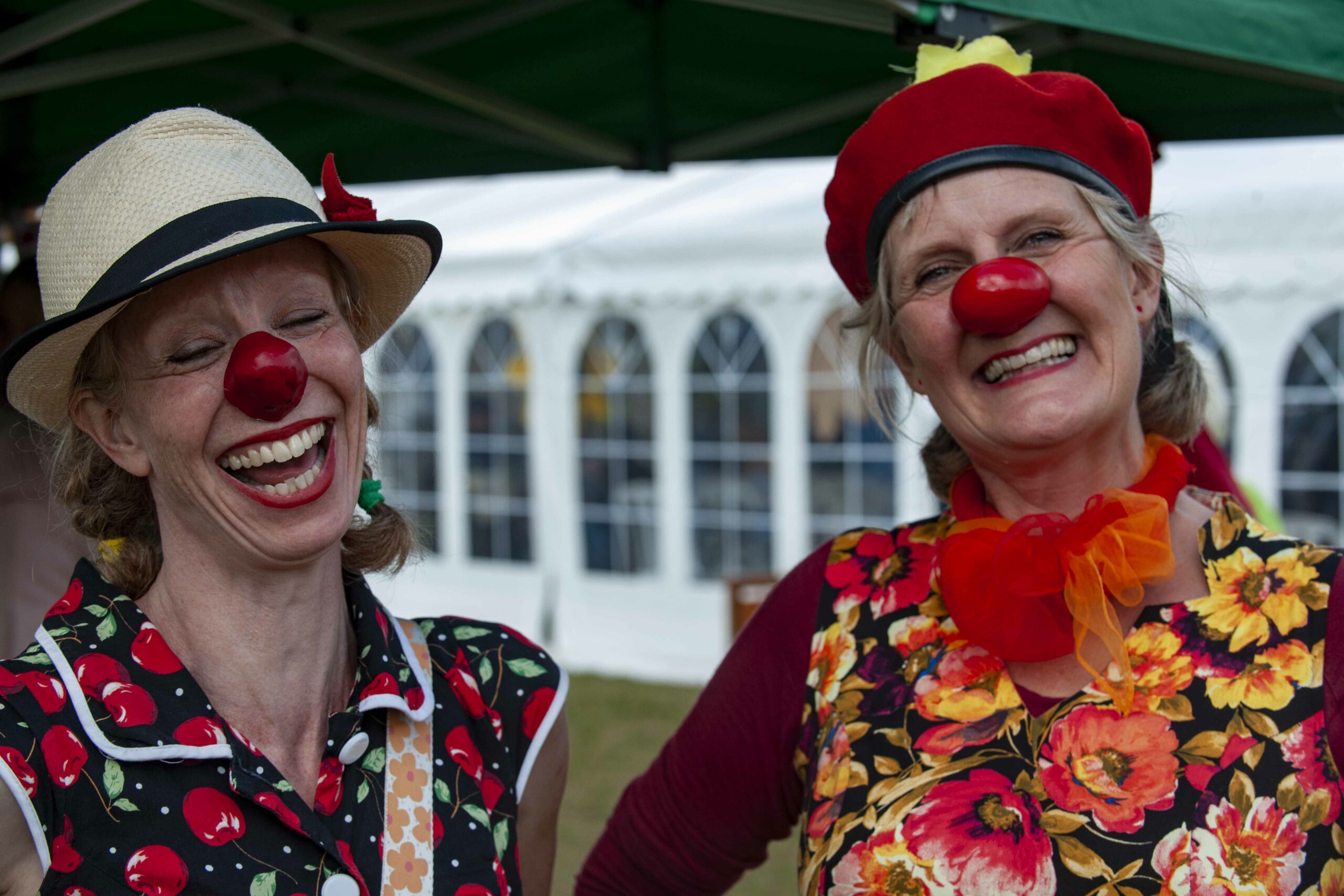 Et par plejehjemsklovne underholdt på pladsen. Klovne-kostumerne var nok sjovere end replikkerne. Men børnene morede sig, og med hjælp fra klovnene til sæbeboble-pusten, blev morskaben sjovere.