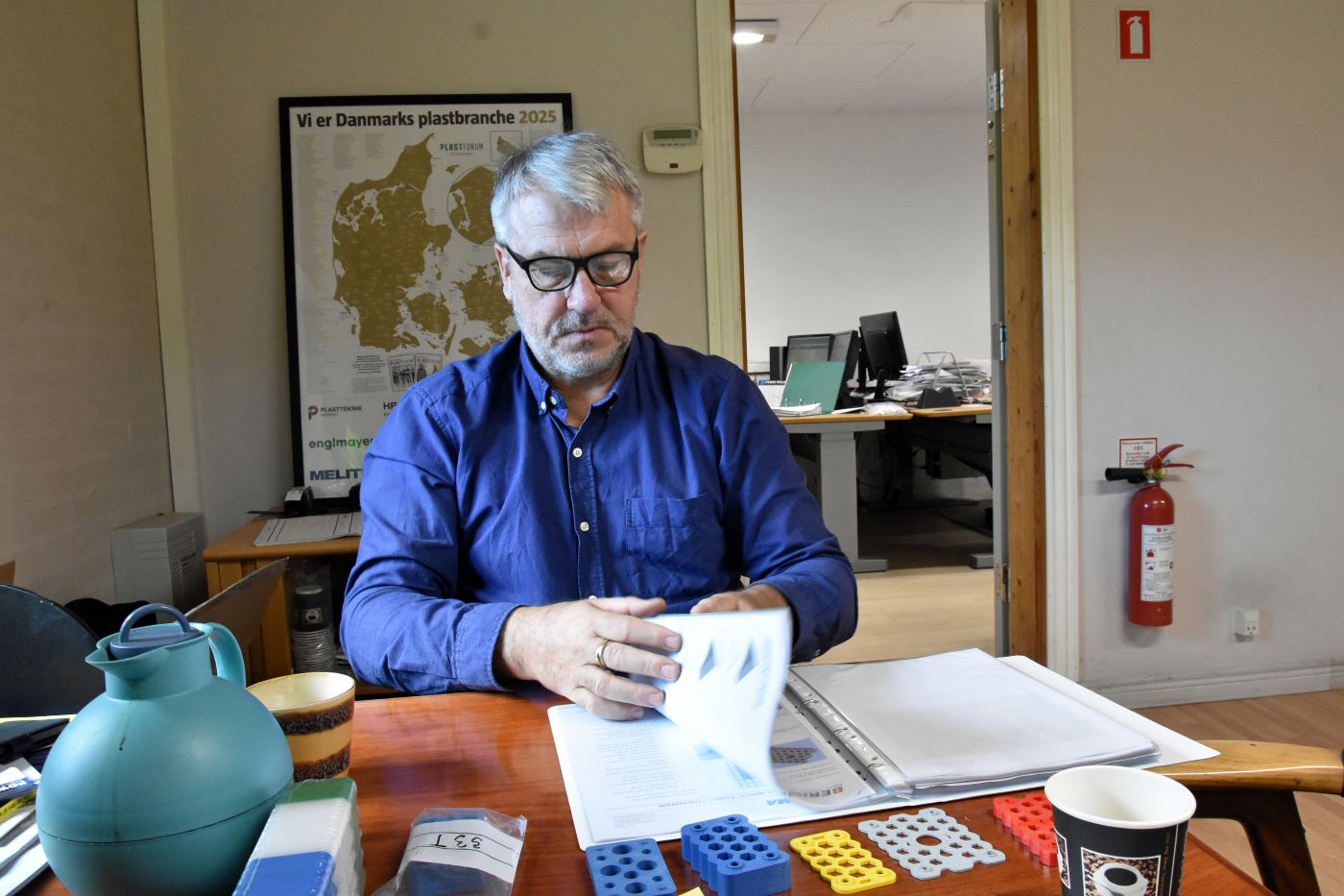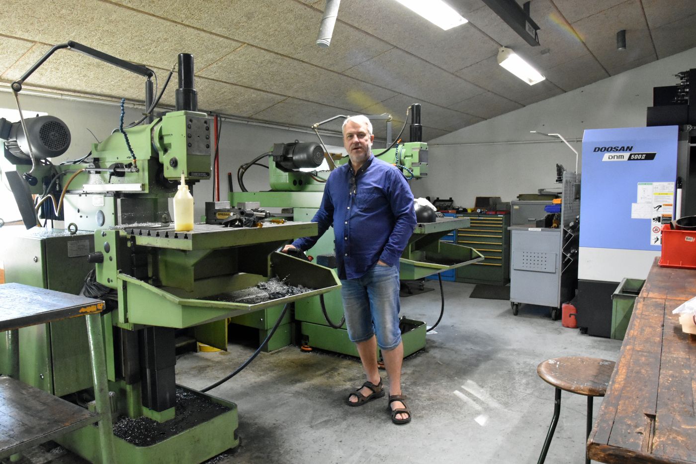 Benny Nielsen viser engageret rundt på fabrikken. Mange maskiner og formværktøj er taget med fra Tøndervej