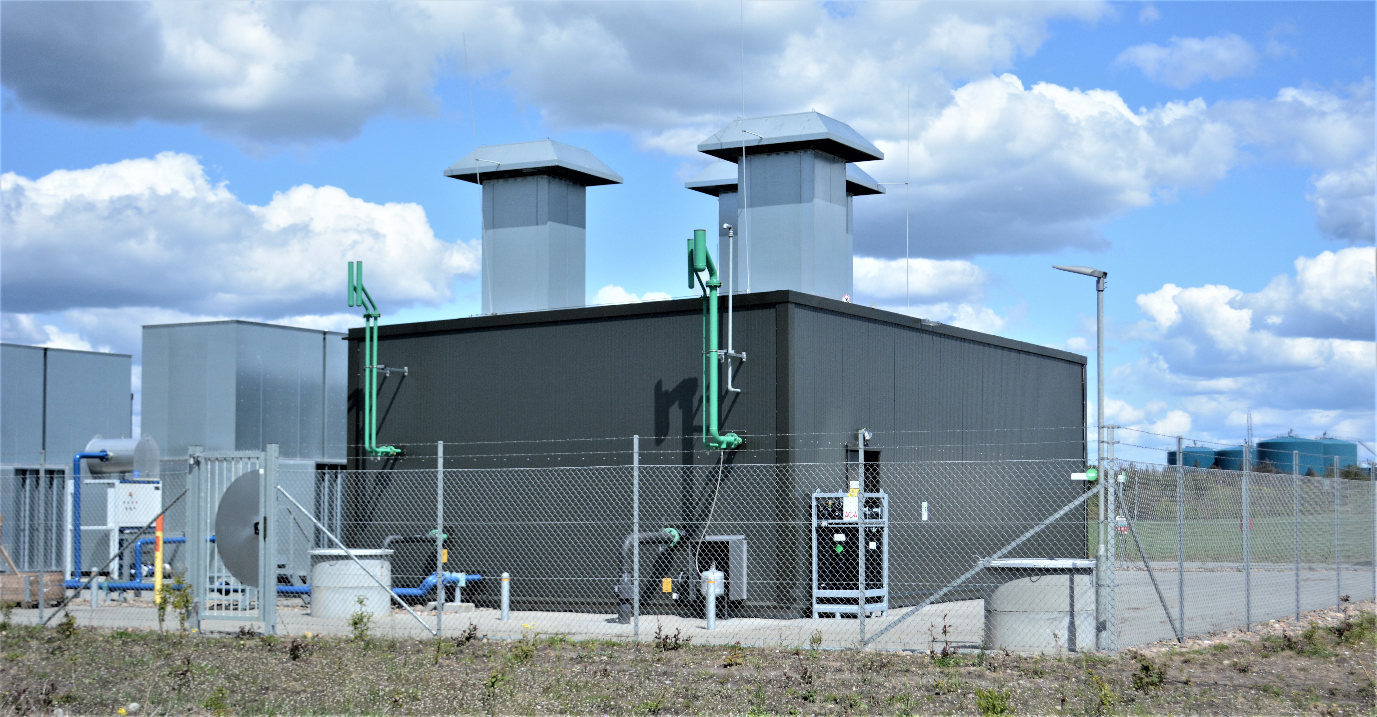 For at få Ribe Biogas på naturgasnettet var det nødvendigt at bygge en stor pumpestation i industriområdet nord for Ribe ikke langt fra selve Ribe Biogas, som det ses på billedet over artiklen.