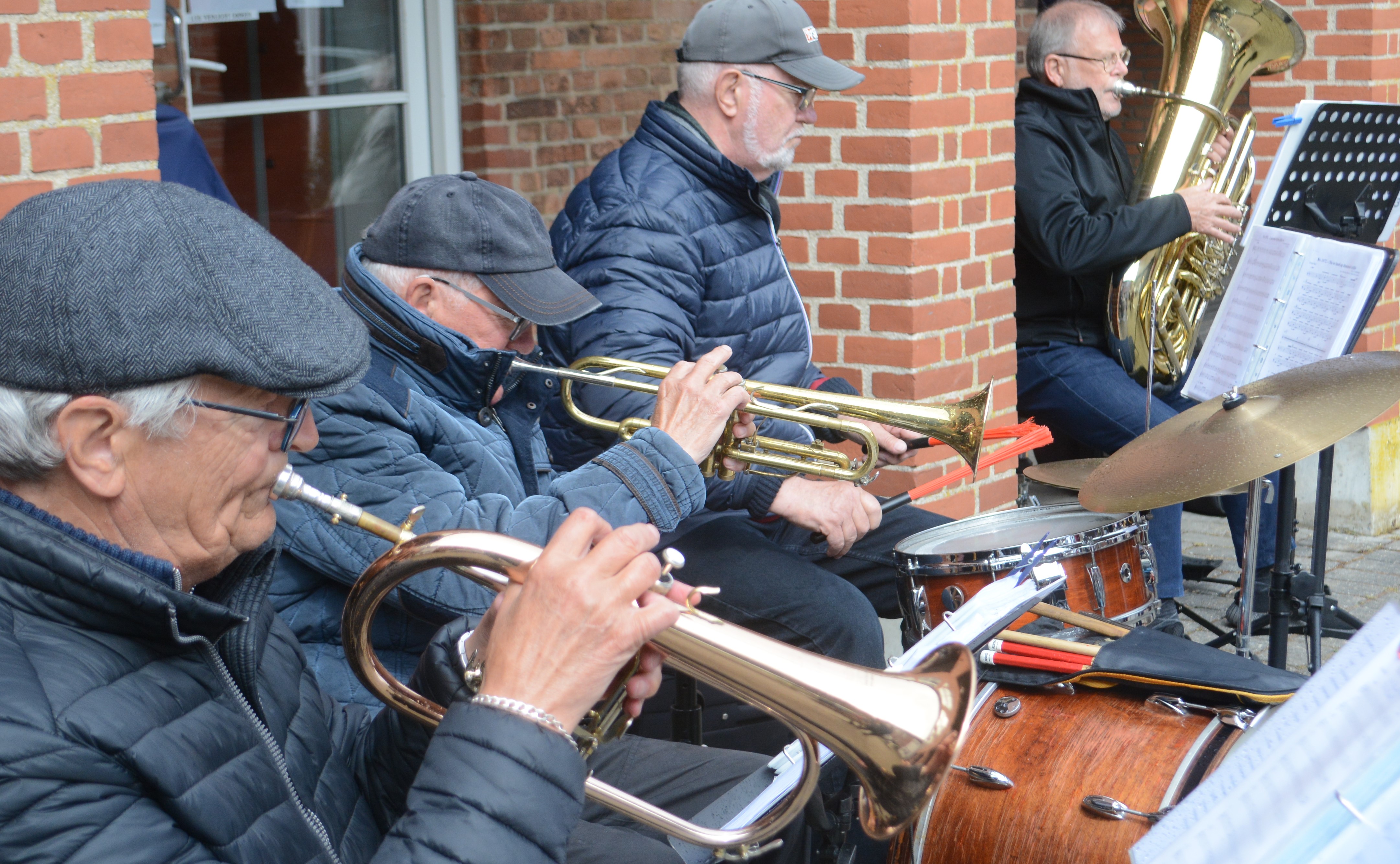 En lille regnbyge kunne ikke sætte skår i glæden, da Kongeå Blæserorkester tirsdag formiddag gav koncerter på henholdsvis Margrethegården og Dagmargården i Ribe.