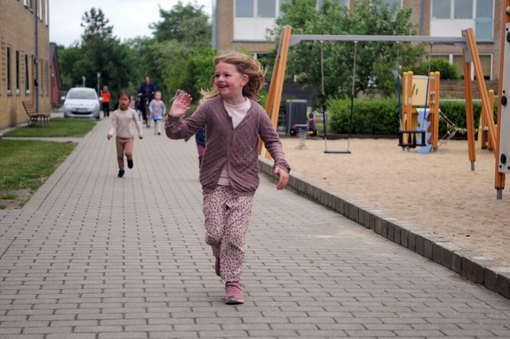 På ruten ventede Duddi Lauridsen med fire børn fra storpasningsordningen Villa Villa Kulla fra Bordingsvej, for Sofia, der er Duddis datter, var nemlig med i løbet, og hende skulle der vinkes til.