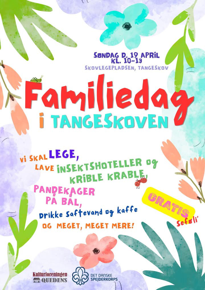 Søndag den 19. april vil der, som ved de tidligere arrangementer, være en lang række aktiviteter, som børn og forældre kan deltage i. Der skal leges, der skal bygges insekthoteller, der skal bages og spises pandekager samt mange andre aktiviteter. Deltagelsen er gratis. Man møder bare op på legepladsen i Tangeskoven.
