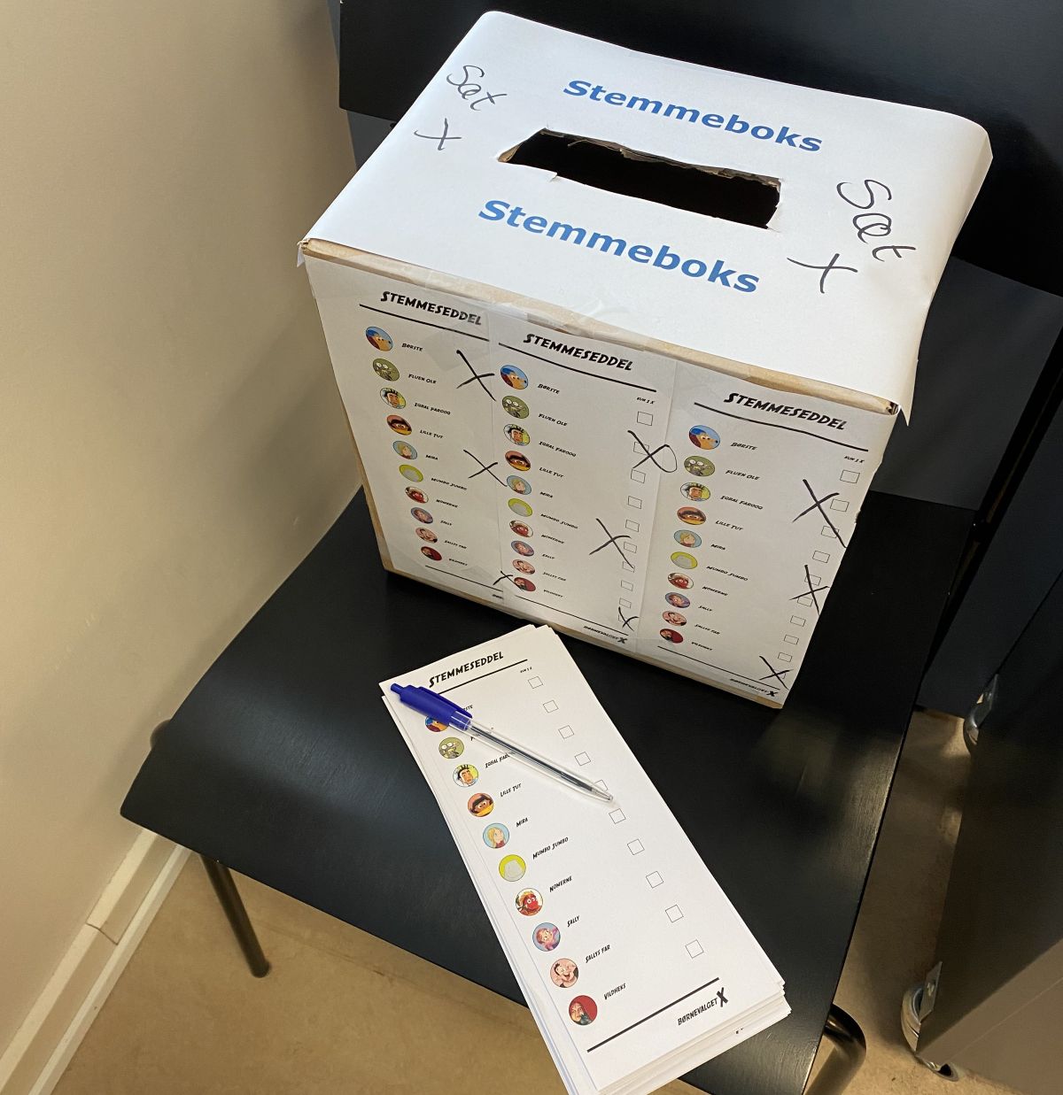 På børnebiblioteket i Ribe er der opsat en stemmeboks og printet stemmesedler.