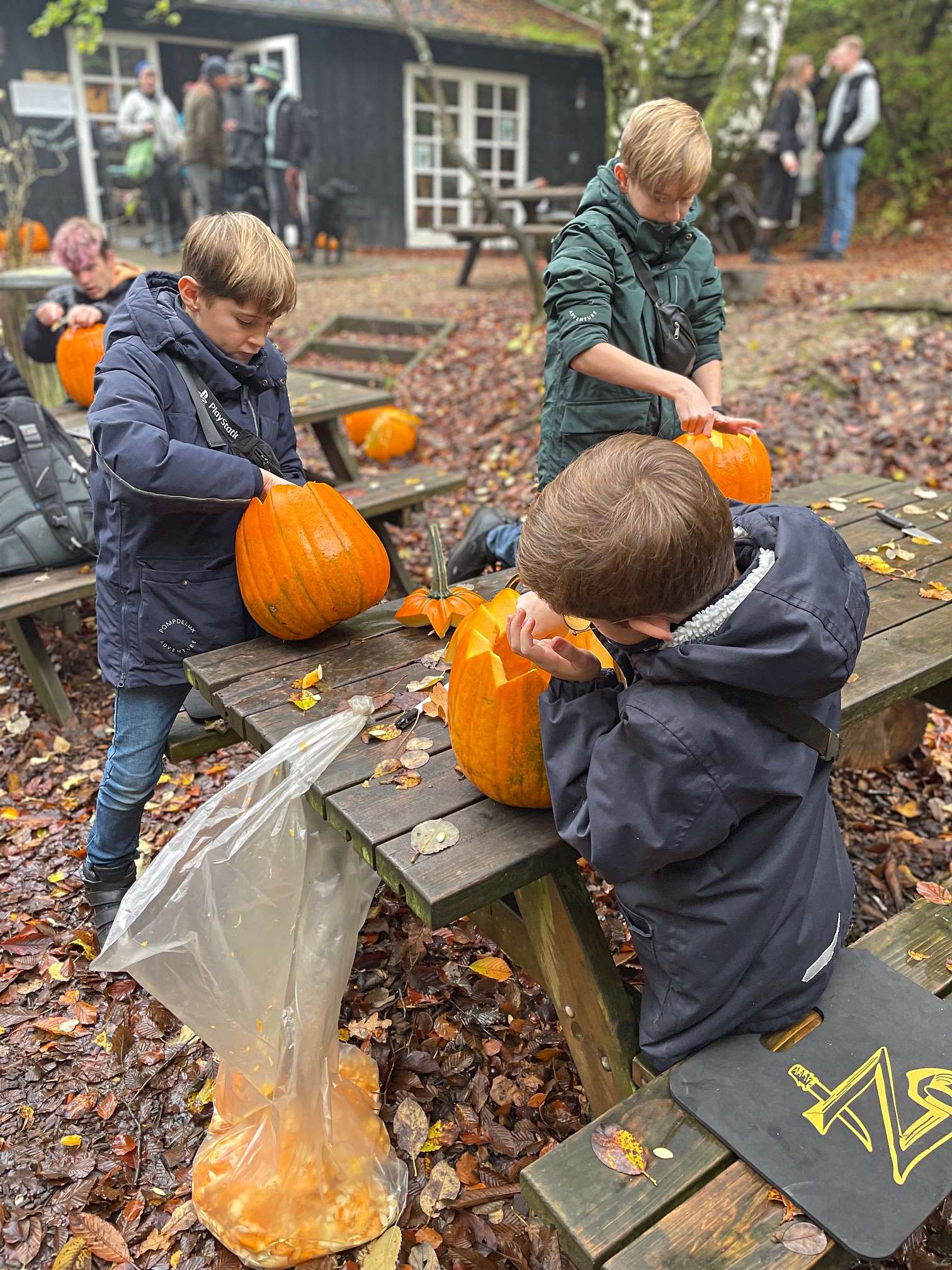 En anden aktivitet på stedet var at skære græskarlygter. – Mange fik lavet nogle rigtig flotte græskarlygter, som nu pynter så flot ved kalkgruberne. Det var også muligt at købe dem og tage dem med hjem.