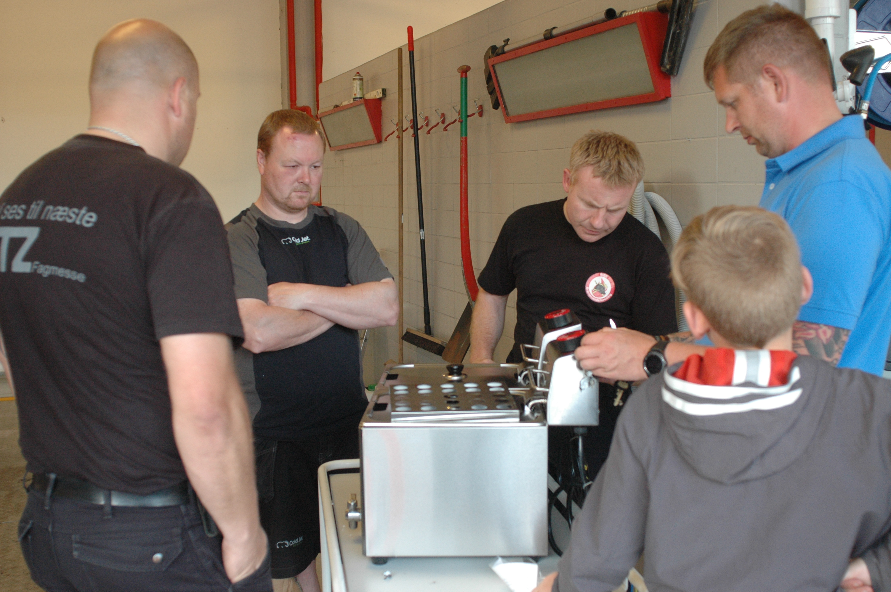 På brandstationen serveres der grill-pølser, flydende forfriskninger til børn og voksne, og børnene har mulighed for at hoppe i hoppeborge, indtage brandbilerne og i øvrigt more sig med hinanden.