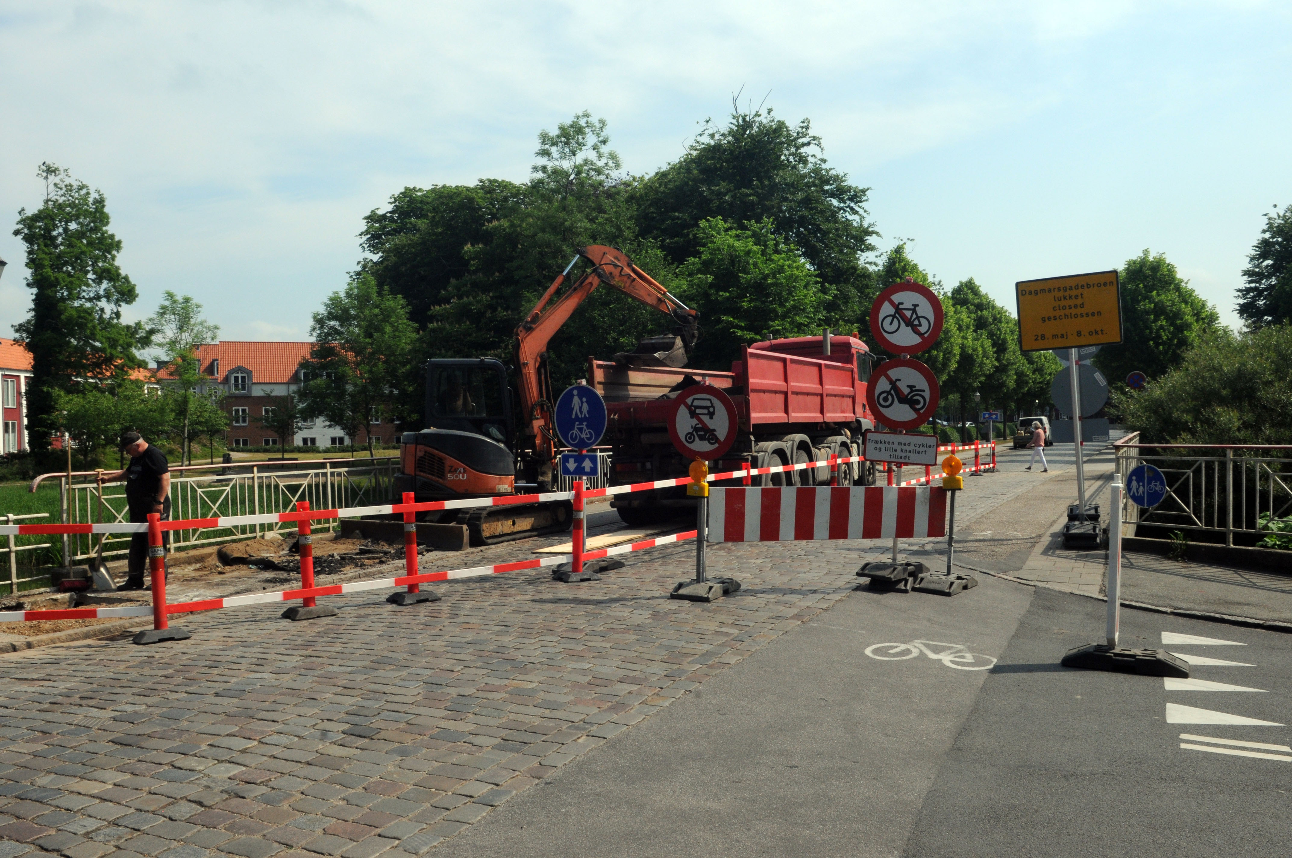 Skiltning omkring broarbejdet på Dagmars broen har vist været kendt af mange de sidste par uger og i dag var så den første dag med afspærring og igangsættelse af arbejdet.