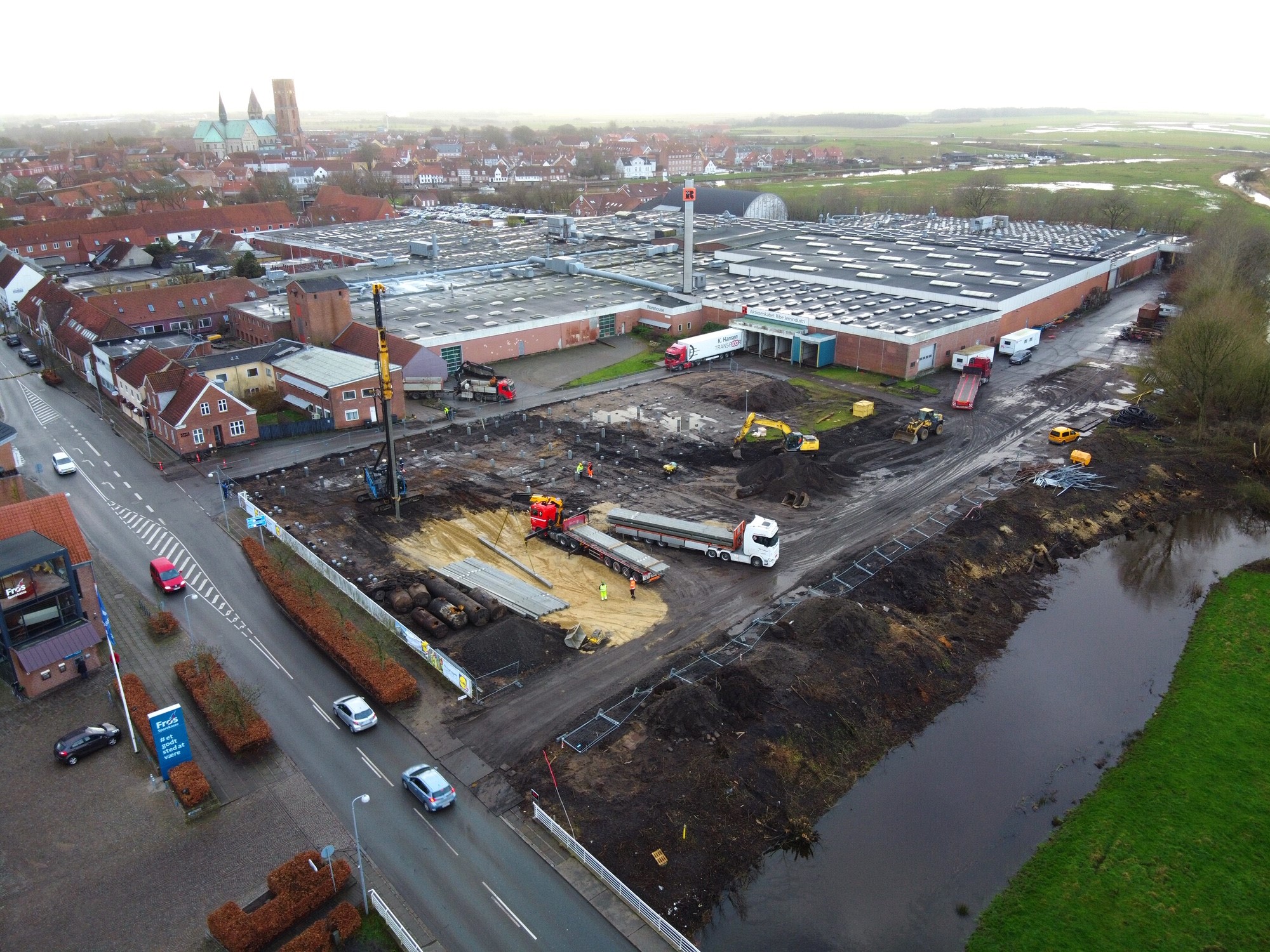 Byggepladsen ved LIDL – på Støberigrunden – er blevet det store tilløbsstykke for mange Ribe-borgere – og der sker så sandelig også noget hele tiden. Det kan høres vidt omkring, når spunsplader bankes i jorden.