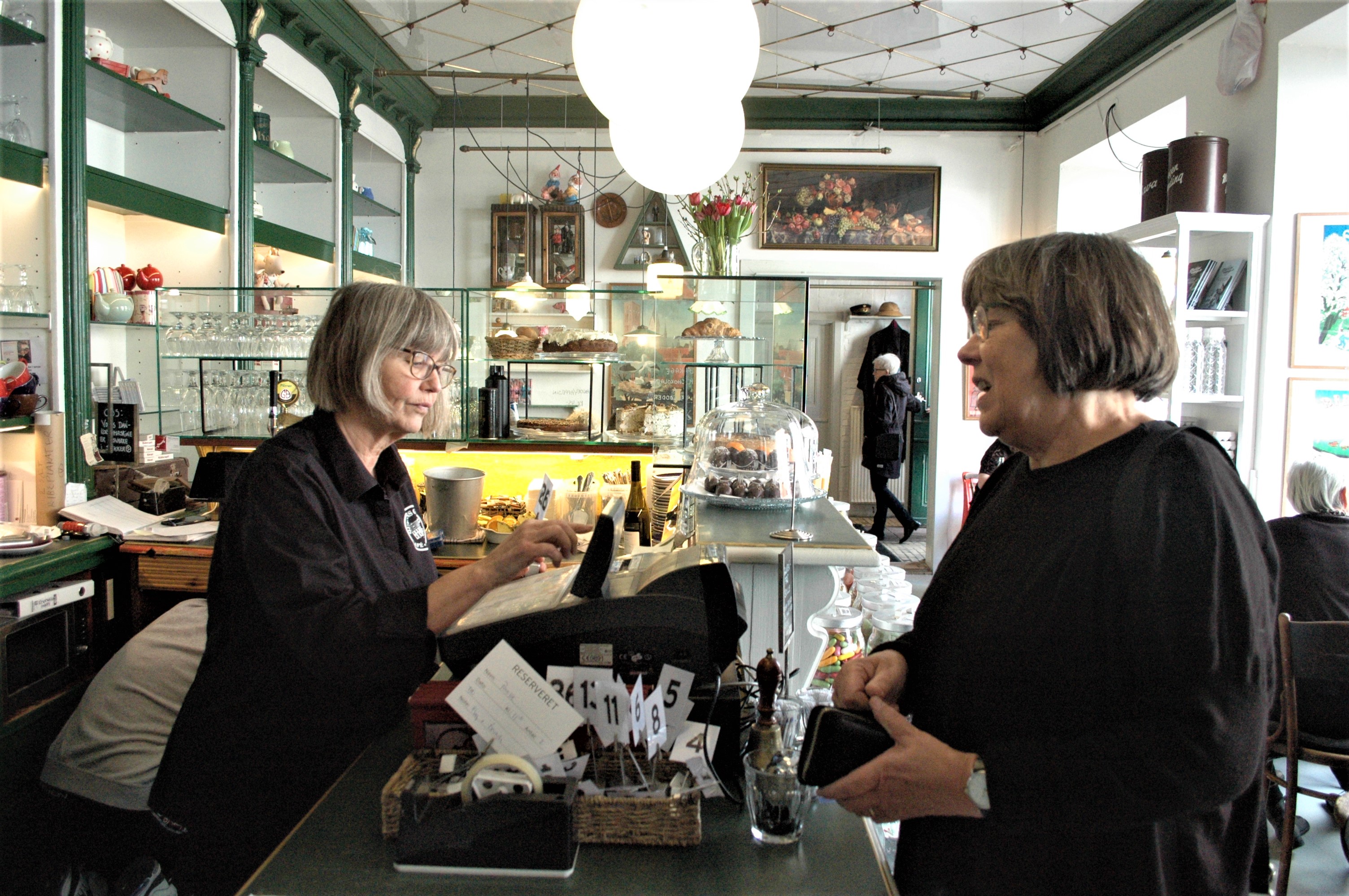 – Jeg er en svigerinde til Ole Barkentin og skulle til Ribe lørdag, men da jeg hørte, at Lise genåbnede sin cafe fredag, så fremrykkede jeg mit besøg, så jeg kunne være med til åbningen, fortalte Elsebet Nørgaard alt i mens hun udvekslede det sidste nyt med Lise og afgav sin bestilling.