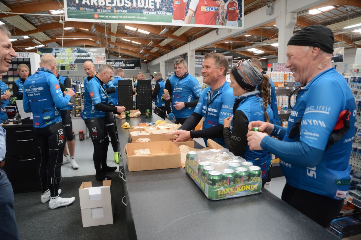 Cykel Nerven blev i Ribe denne aften modtaget på Stark på Haulundvej, hvor der var både sandwich, frugt og sodavand til deltagerne, så de kunne ”tanke” op inden turen tilbage. Og det skyldes, at den lokale Stark gerne vil bakke op om gode, lokale projekter.