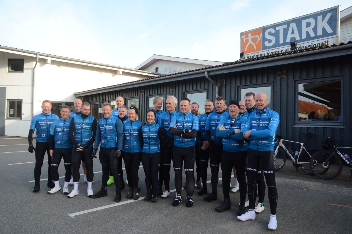 Den snes cykelryttere, der besøgte Ribe torsdag, er en del af Team Vestjylland, der sammenlagt rummer omkring 40 cyklister, og de er alle medlem af Cykel Nerven, der – som nævnt – omfatter 600 ryttere på landsbasis. Cykel Nerven kører for at skaffe penge til sygdommen sklerose.