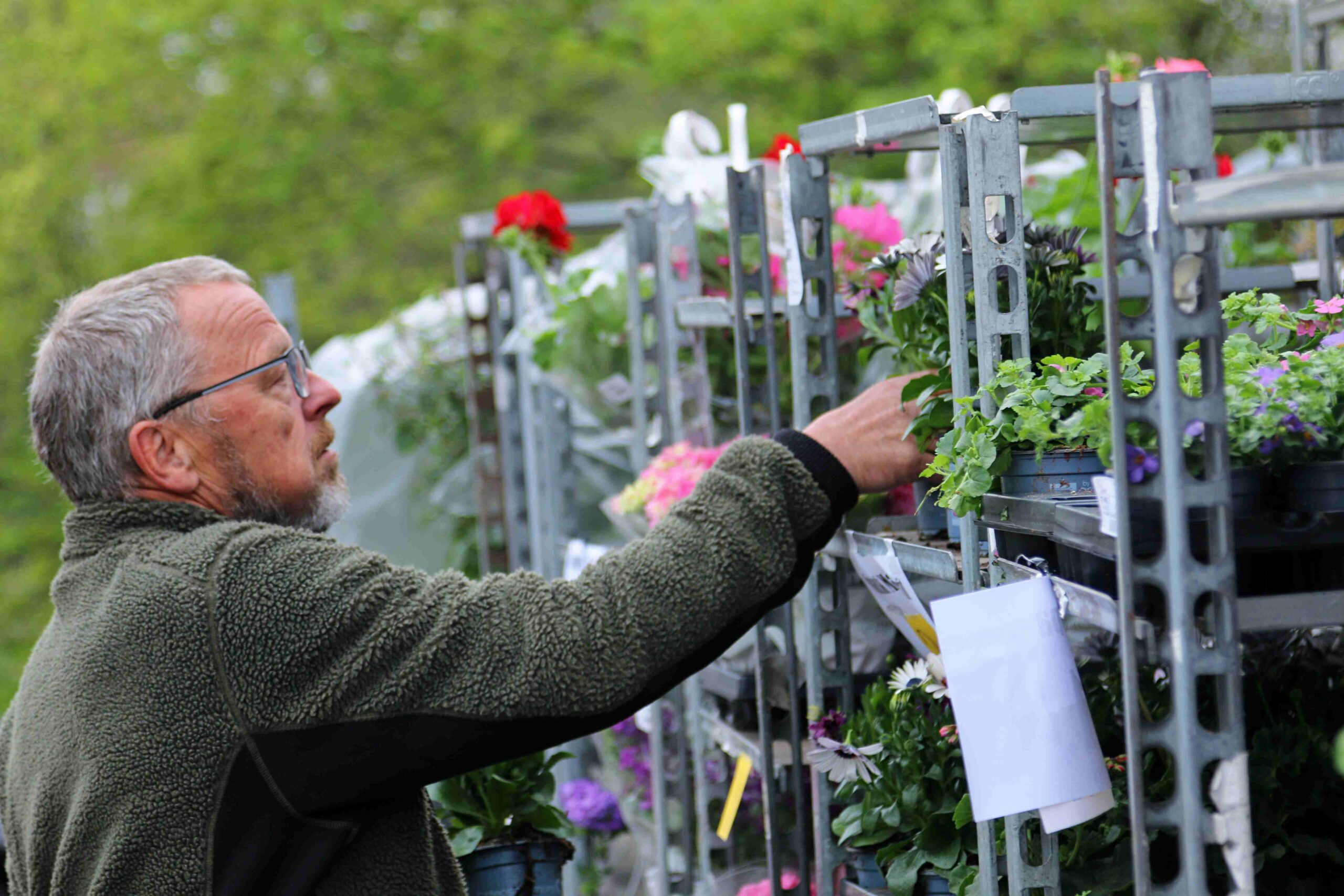 Derfor var det også en glad brugsuddeler, Klaus Thuesen, som RYK IND RIBE talte med sidst på eftermiddagen: – Vi havde blomster for 20.000 kr til salg – og er derfor meget tilfredse med dagens salg, hvor medlemmer af bestyrelsen hjalp til med at servicere de mange kunder.
