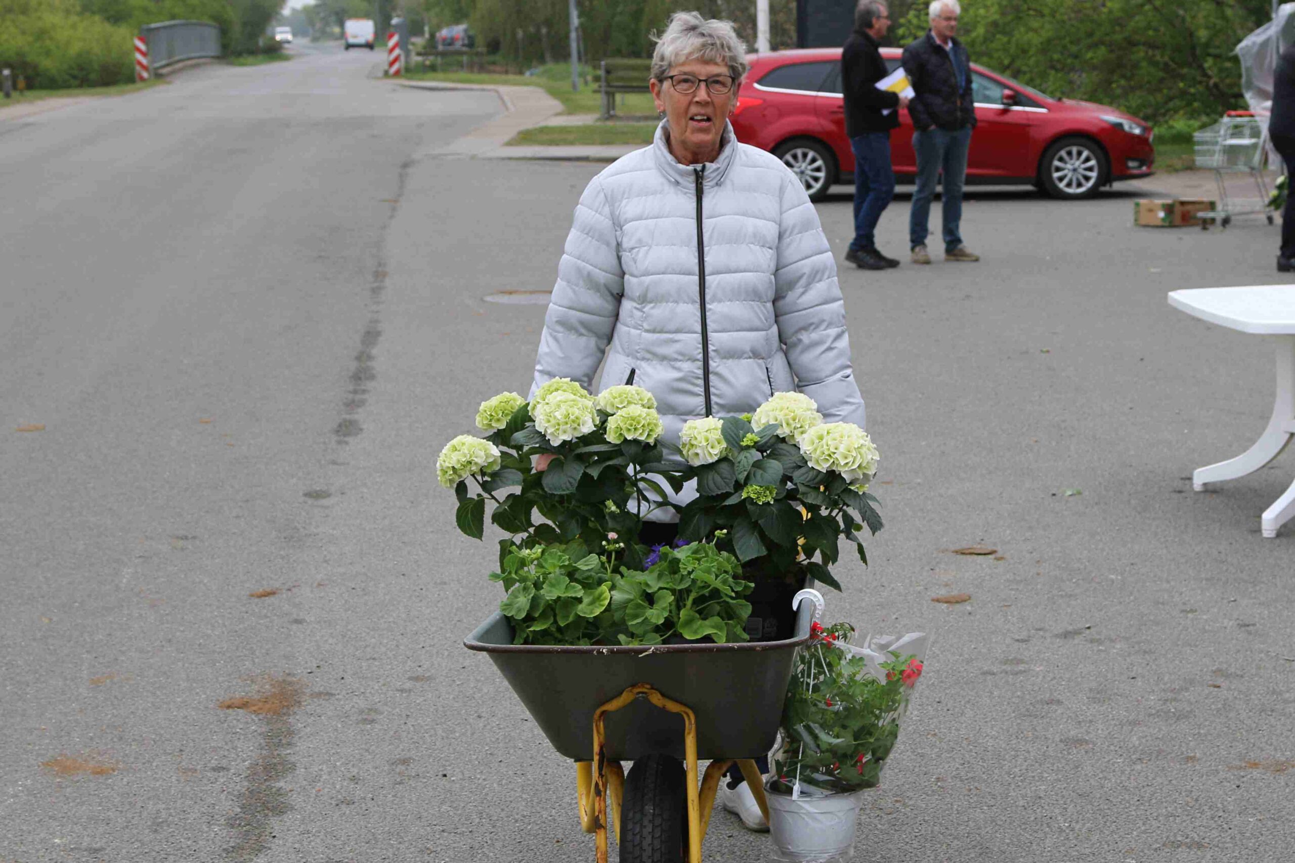 Og der var mange allerede kl. 09:00, hvor dagens program startede med kø både ved blomsterne, boden med gratis kaffe og kanelsnegle og ikke mindst på parkeringspladserne. Derfor var det smart at vælge trillebøren til at få de mange blomster bragt hjem – eller kurven under den store barnevogn, hvor børn fra den kommunale dagpleje med interesse så på de mange farvestrålende blomster.