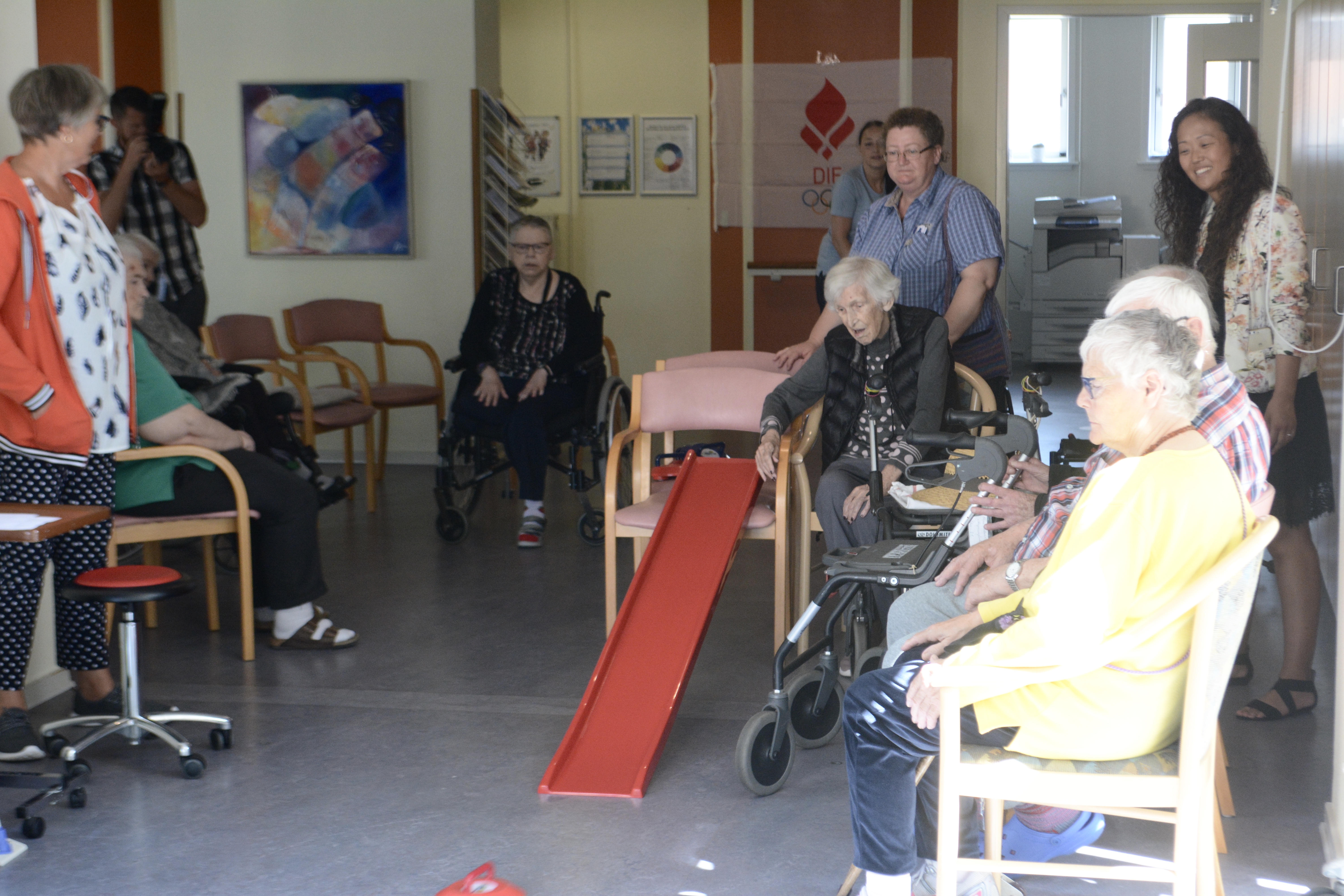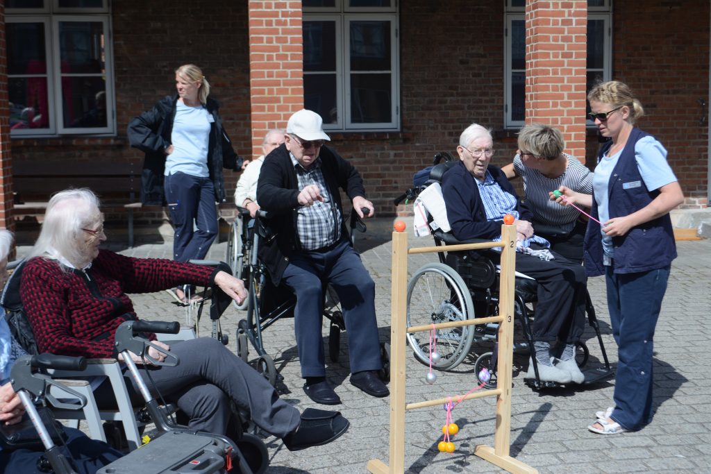 Certificeringen af Dagmargården blev markeret fredag formiddag med konkurrencer både inden døre og udenfor beboerne i mellem. Det gjaldt bl.a. curling på en specielt tilrettelagt bane, samt stigebold, og der var ingen tvivl om, at beboerne gik op i konkurrencen med liv og lyst.