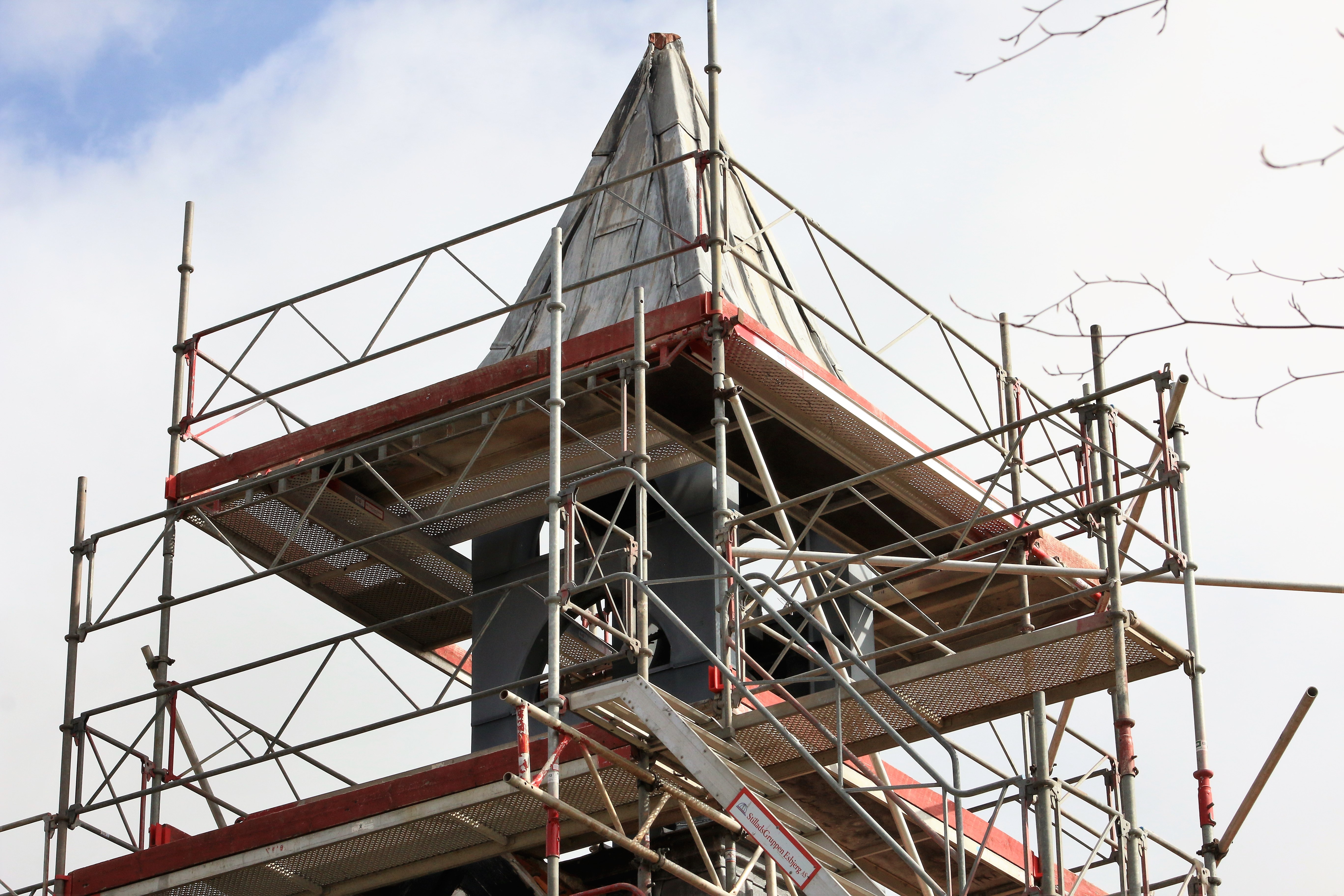 Stilladset skal – efter opførelsen af nyt klokketårn – anvendes til at kalke kirken fra
