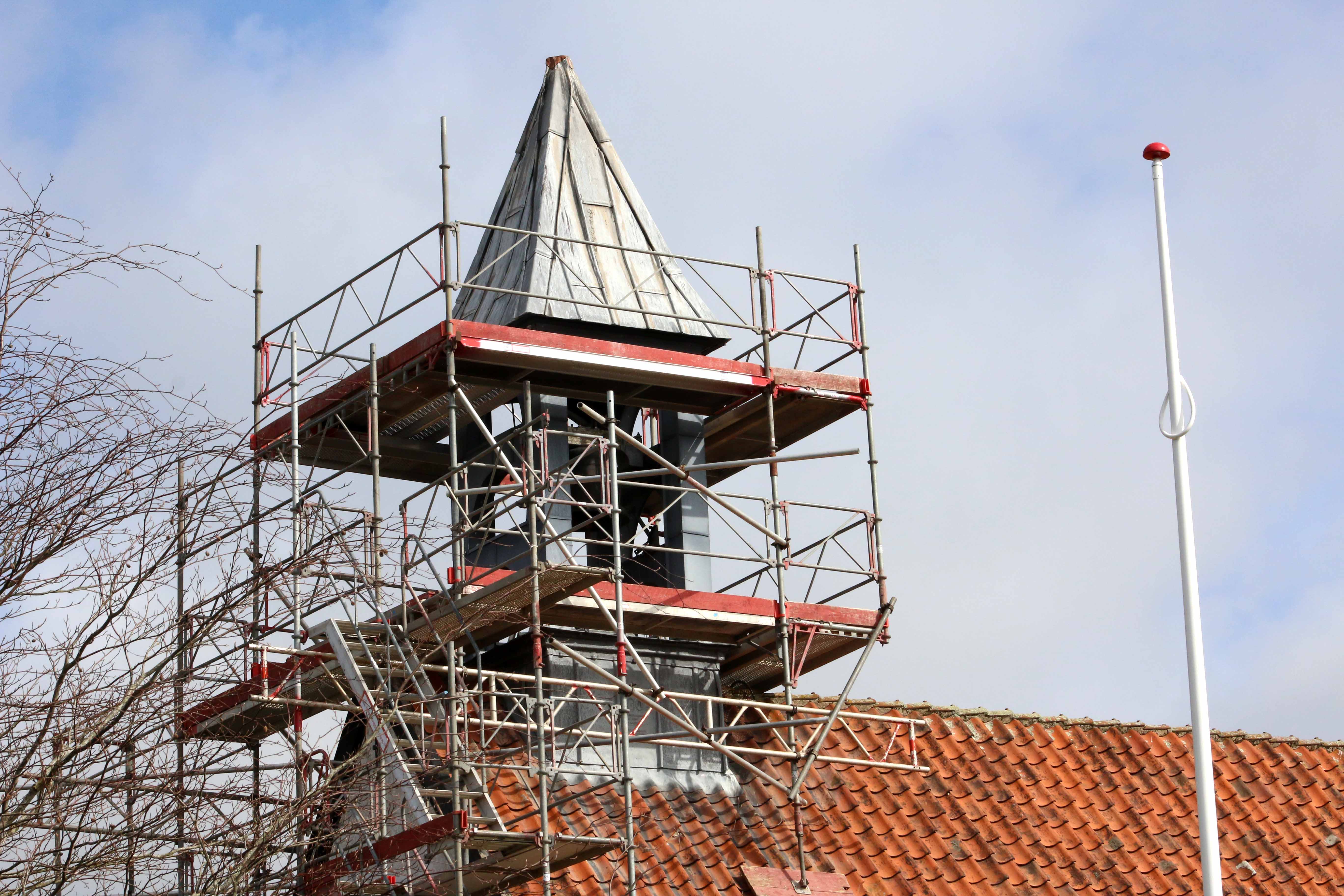 Stilladset skal – efter opførelsen af nyt klokketårn – anvendes til at kalke kirken fra