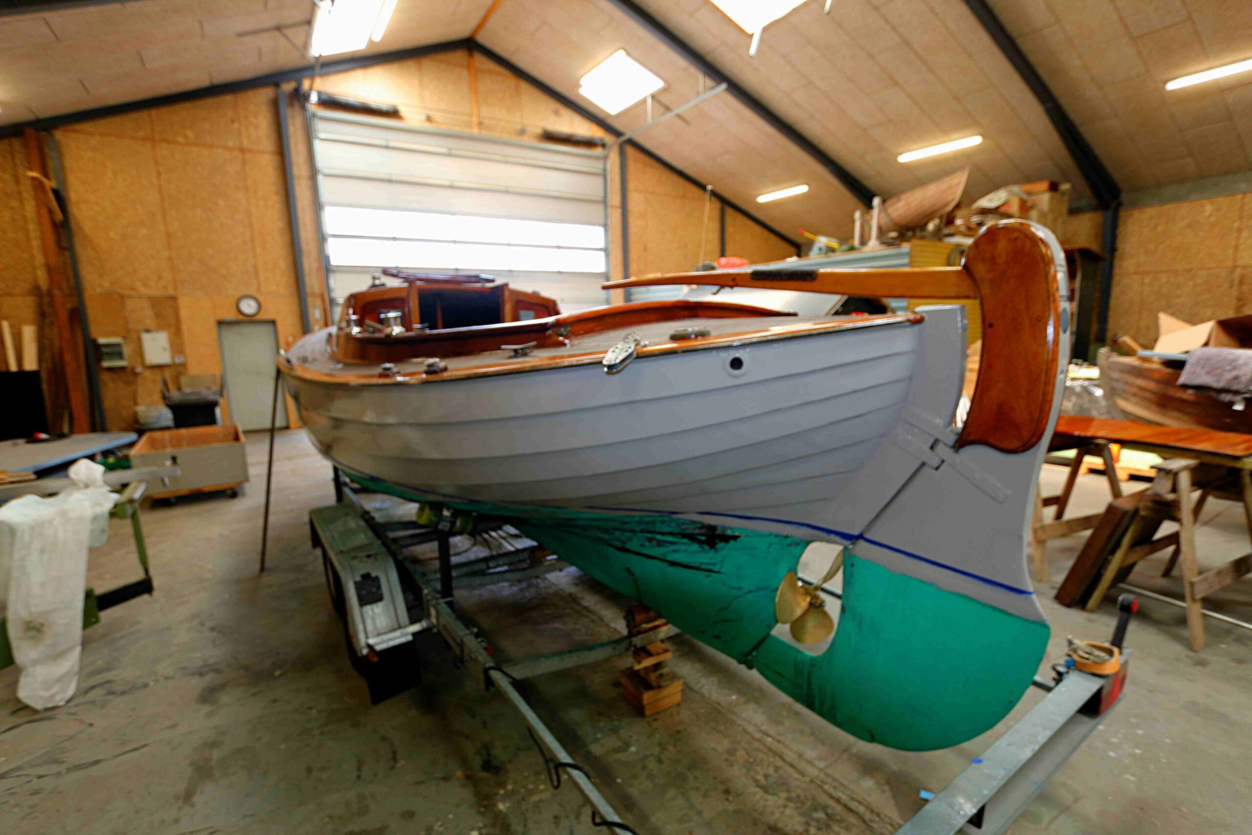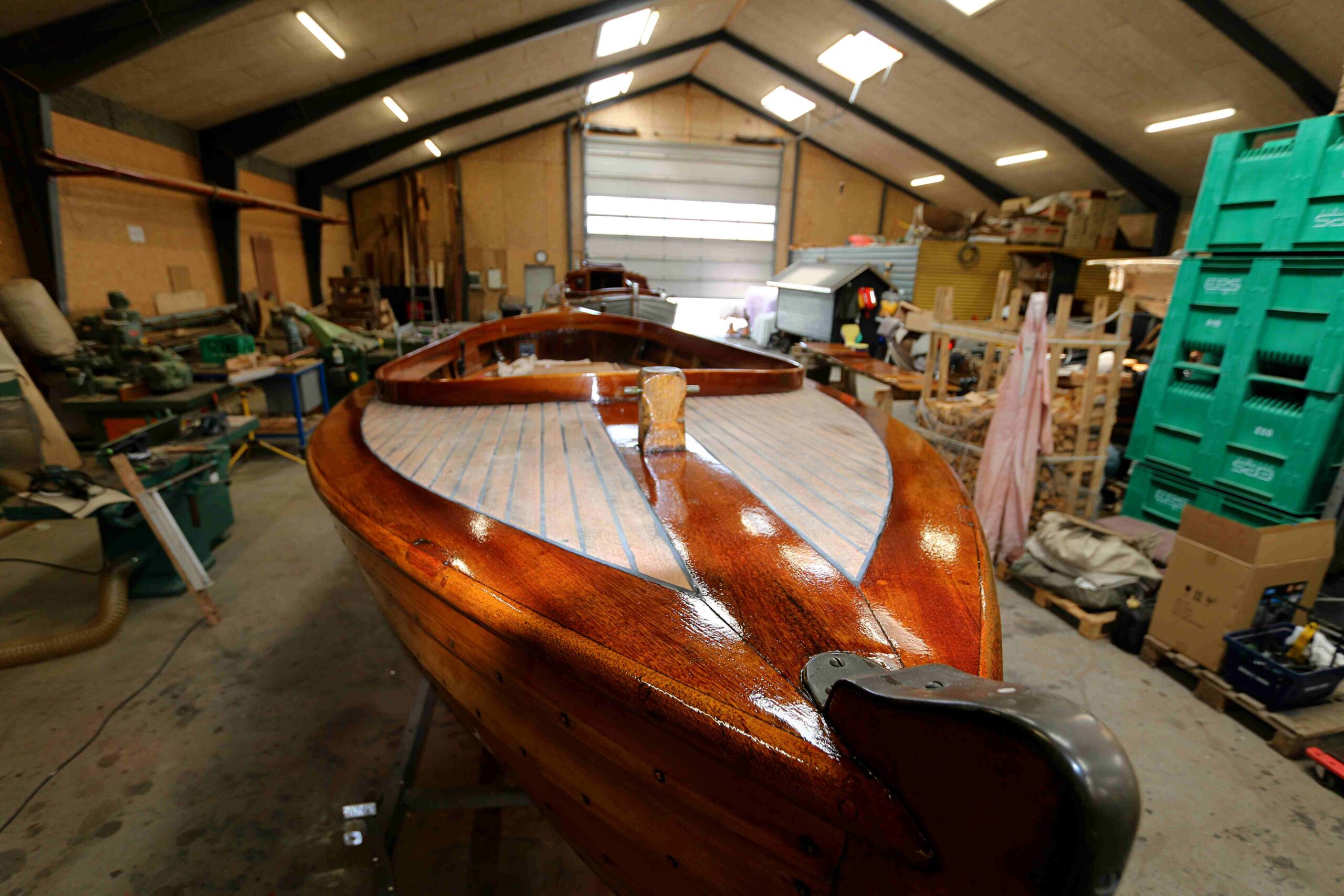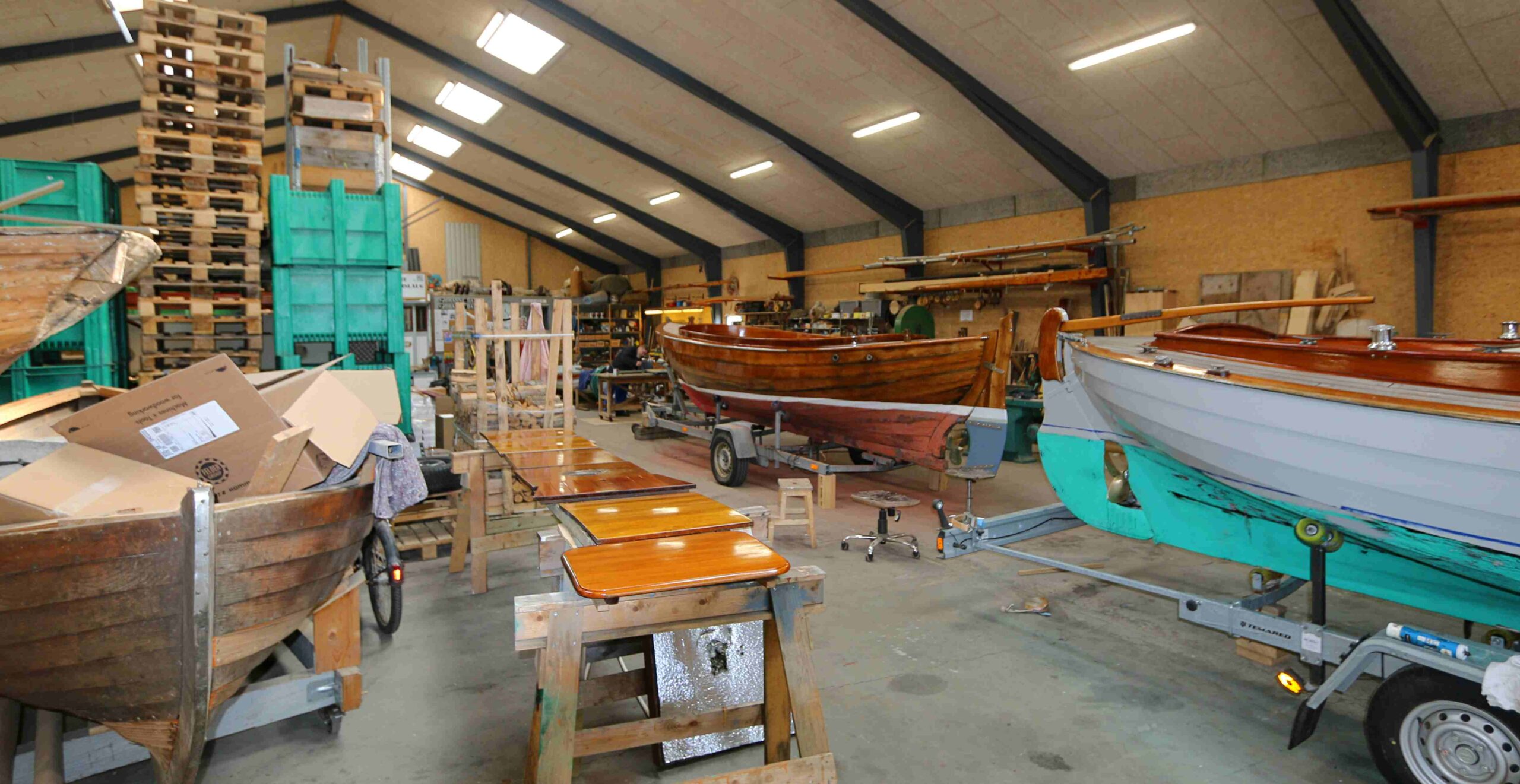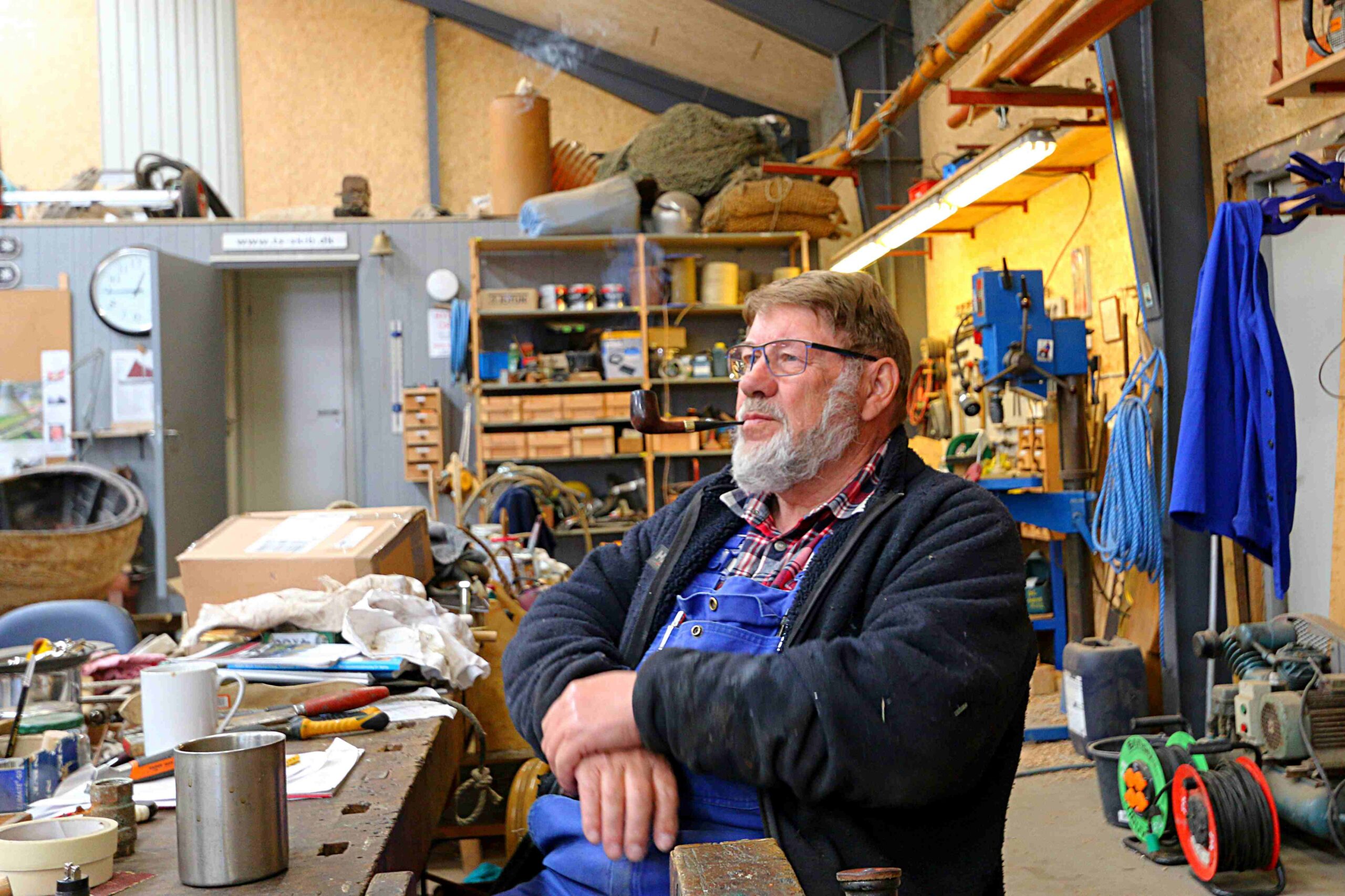 Preben er blevet færdig med endnu en træramme – og giver sig tid til kaffe og en pibetobak. Han udpeger de forskellige både, som ligger i den store værkstedshal – og kender opgaverne for hver og en. – Her ligger så en båd, som skal have nyt agterspejl – det er en jolle fra omkring 1920, forklarer han, inden snakken kommer på ”Johanne Dan”. – Ja, her er der mange opgaver endnu, inden vi kan montere de enkelte dele som sidesværdene, bovsprydet og storbommen.