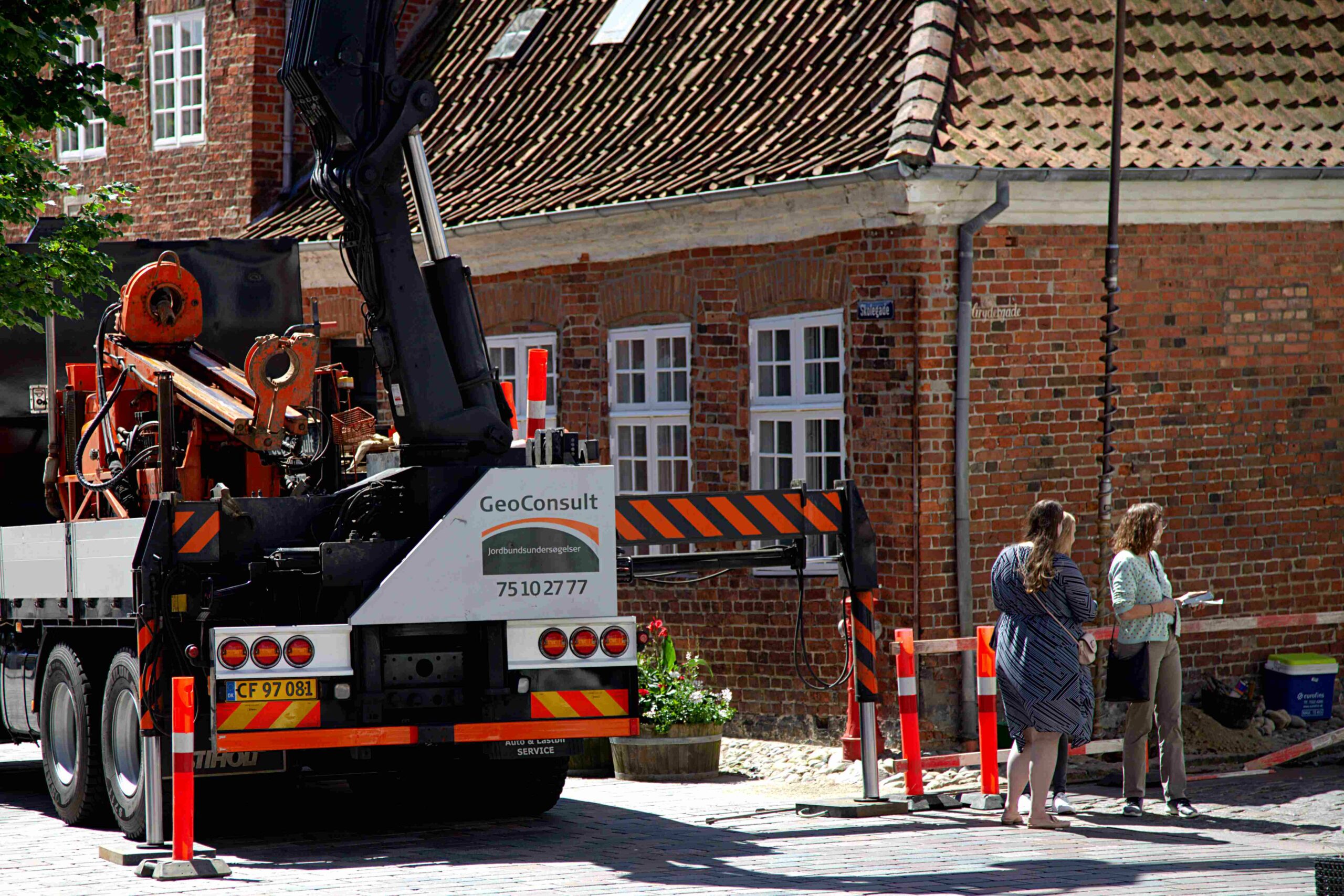 Den gamle skolebygning på hjørnet af Grydergade og Skolegade har det ikke særlig godt. Derfor har Geo Consult fra Bramming i fredags været på stedet og boret på stedet. – Vi foretager nogle geotekniske undersøgelser for at se, hvordan man kan reparere / sikre bygningen, fortæller firmaet Geo Consult til RYK IND RIBE.