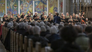 JHN: Ribe Kammerkor er et kor, som har 50-års jubilæum i 2025 og der er stadigvæk mange med fra begyndelsen. Et kor som har et højt niveau, er ambitiøse og gerne vil arbejde. Jeg er overrasket over hvor stabile og velsyngende de er på trods af de seneste års mange lederskift (fem ledere på fire år) plus Corona, som har været en udfordring for alle kor.