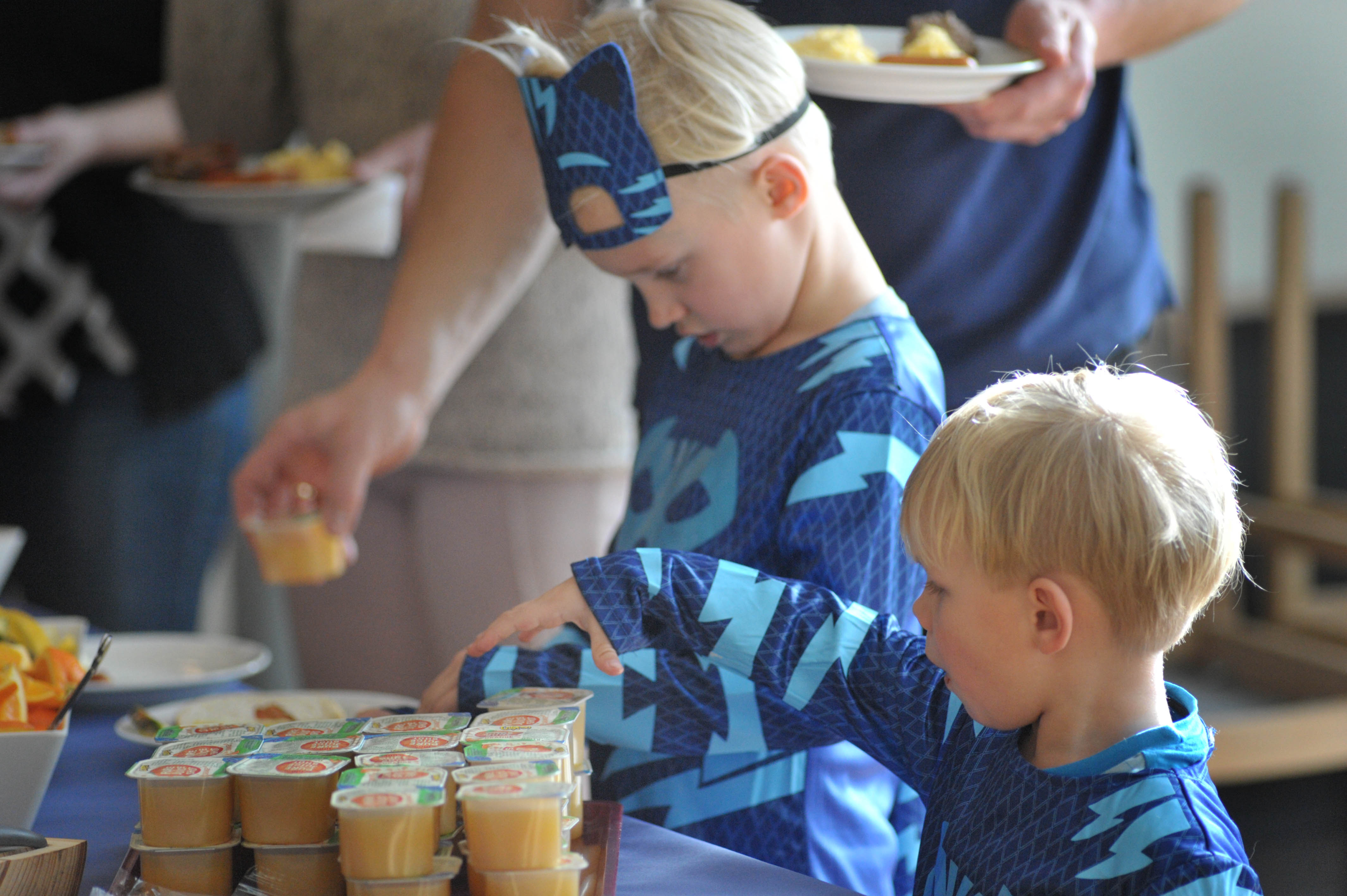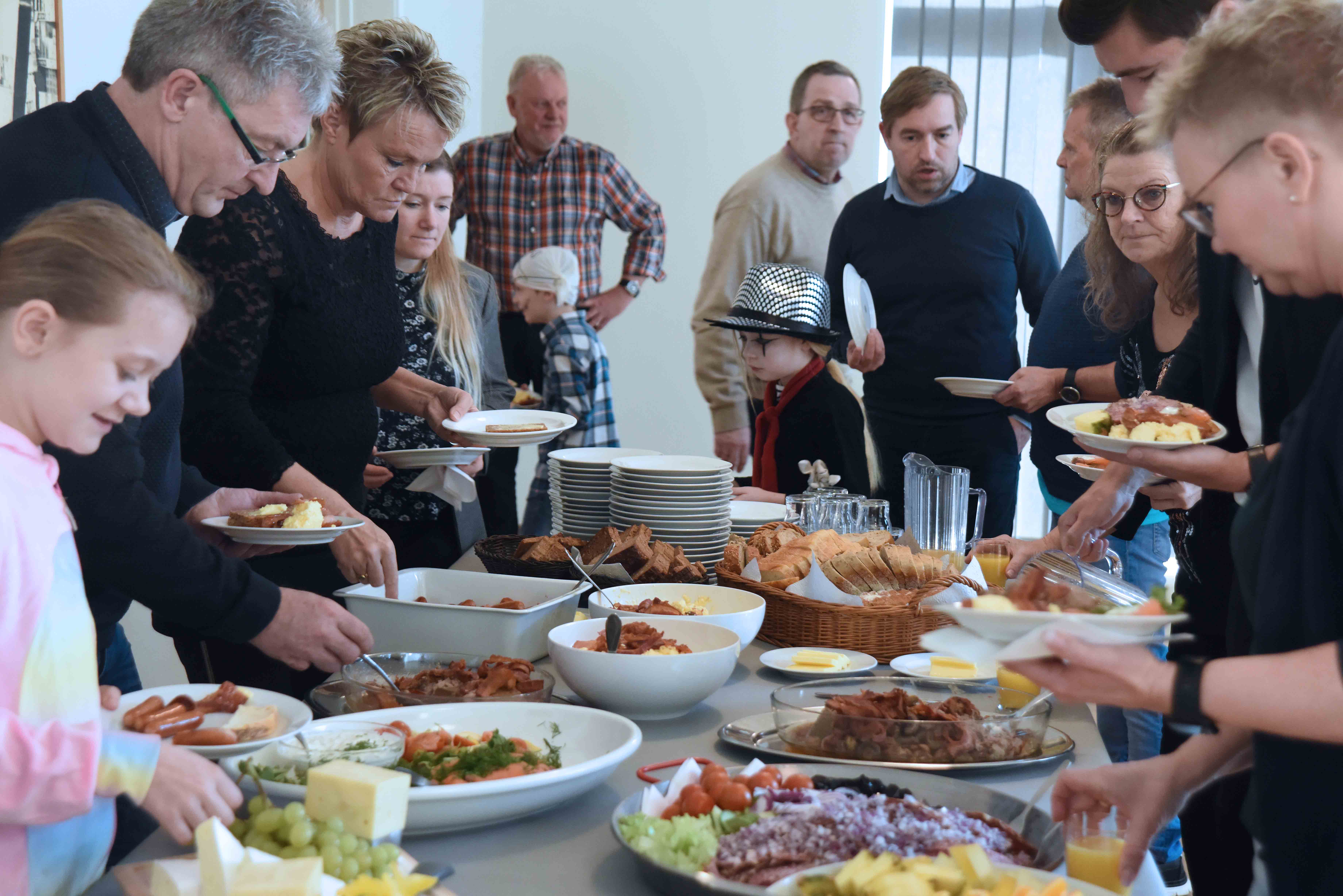 Et fantastik bord var dækket med lækkerier, der var Scrabled eggs m/ pølser, røget laks og et lækkert pålægsfad. Nu er man jo så heldige at sognet råder over et glimrende mejeri og fra Jernved Mejeri var der ikke sparet på brie- og skæreoste. Et dejligt bord med lækkerier, som bekom borgerne ganske godt.