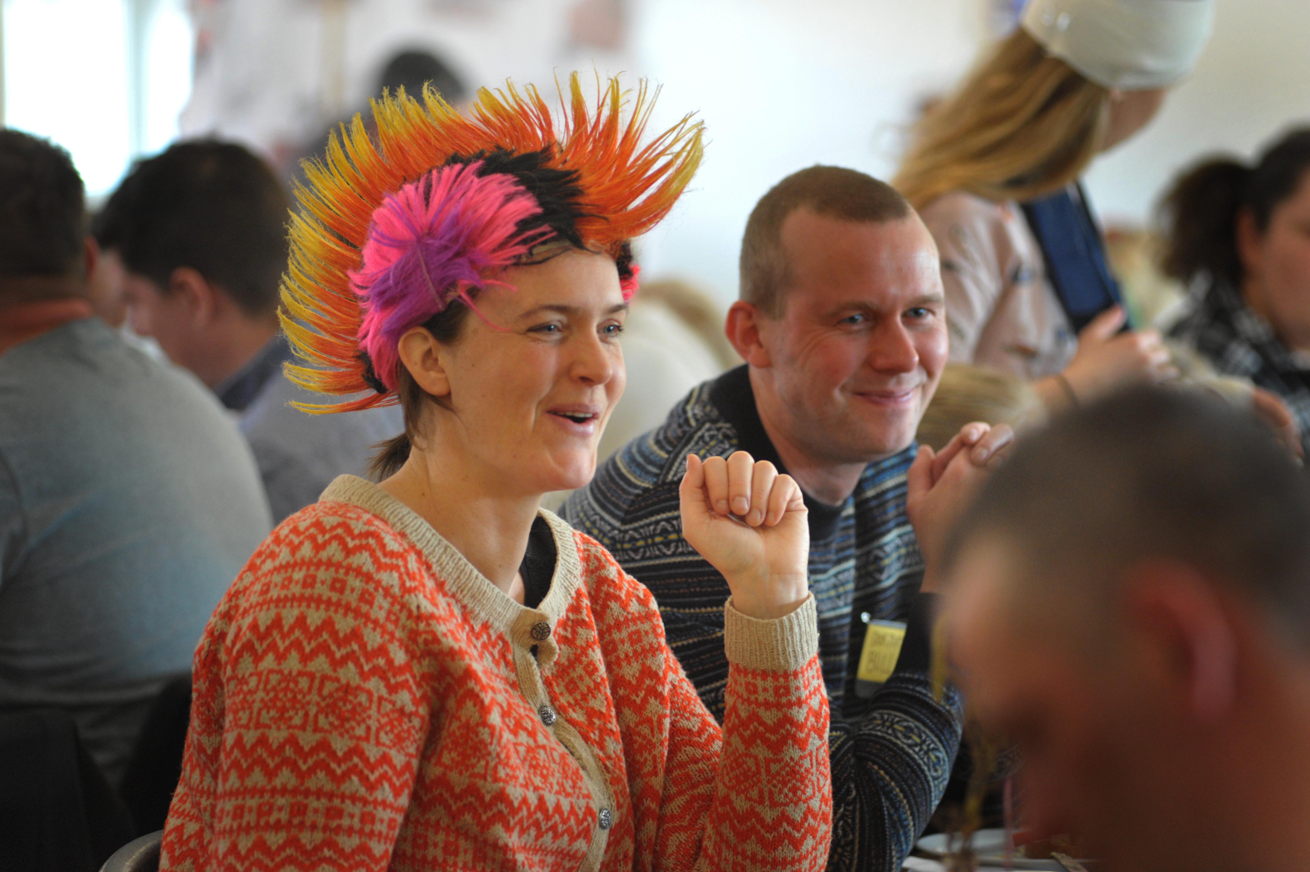 Og så var dagen ellers i gang i Jernved Kulturhus. Mik Stabel-Andersen ville overraske svigermor. I ført morgenkåbe, stikkelsbærben og et bruseforhæng på stativ med valgslogans og billeder af svigermor, fik Mik sat gang i løjerne. Miks svigermor er Henny Fiskbæk der er opstillet til folketinget for Socialdemokraterne, blev da også noget overrasket, og dermed fik han skudt valgkampen i gang i det lille sogn.