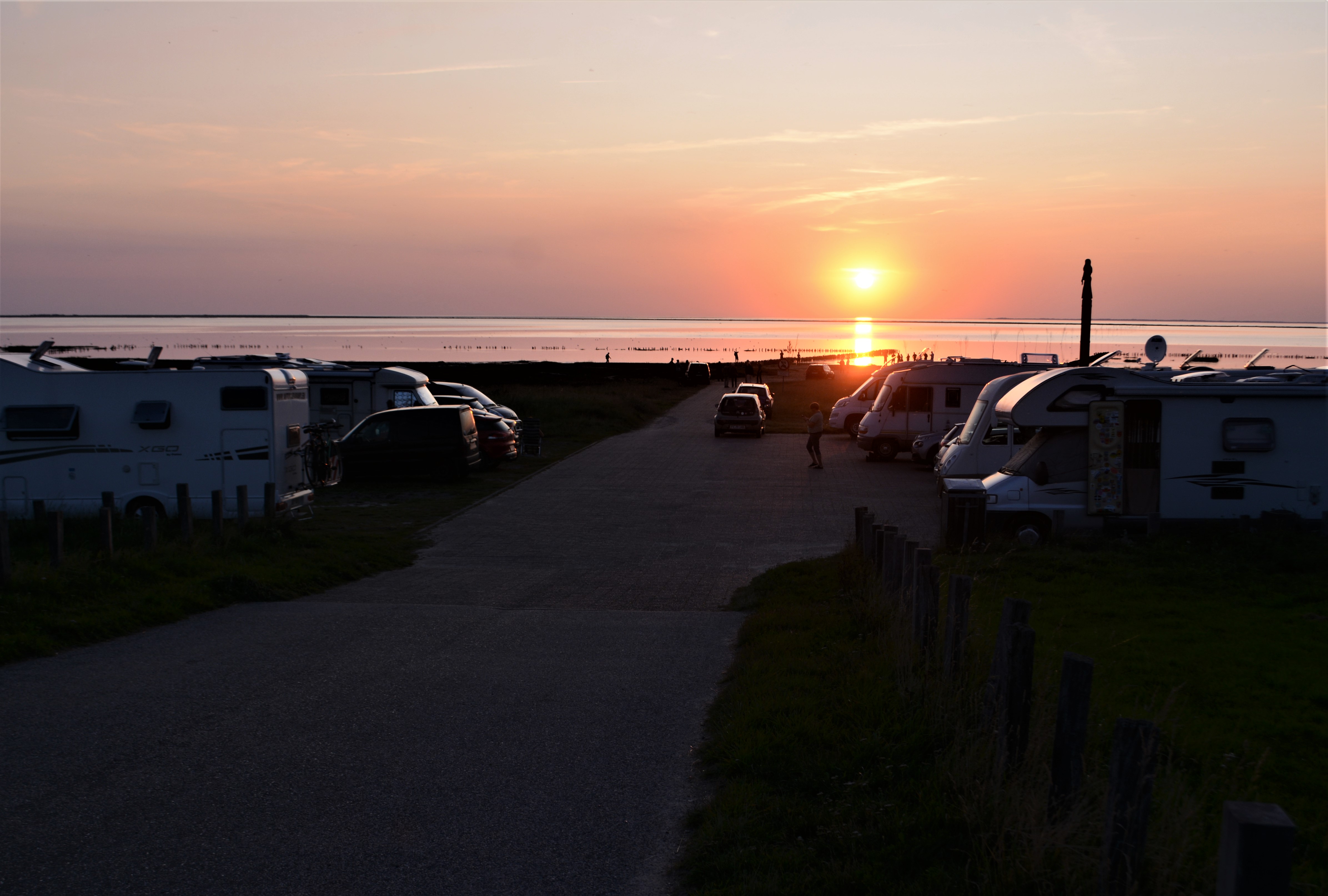 De sidste aftener med sol, blå himmel og varmt vejr har trukket i snesevis af mennesker ud til Mandø Ebbevej og Låningsvejen for at se naturen opføre sit fantastiske spil, hvor farvespillet og stilheden er fremherskende – også blandt menneskene.