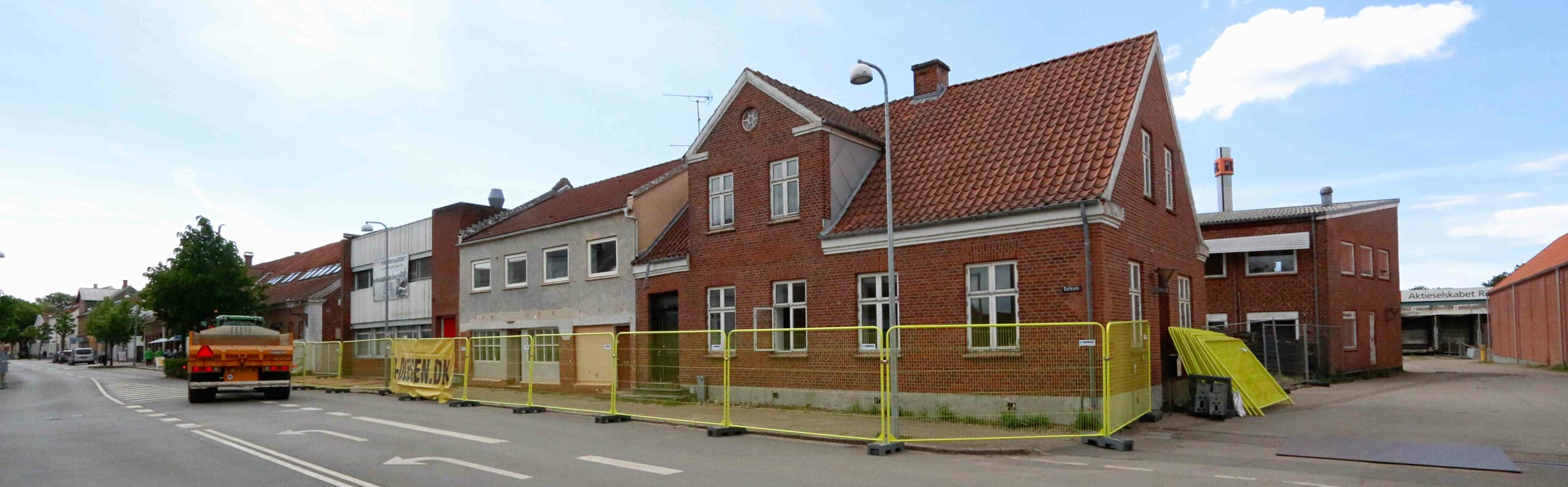 Entreprenørvirksomheden P. Olesen, der har speciale i nedbrydning er i gang med at gnaske sig gennem den første bygning, hvor der tidligere har været advokatkontor / pengeinstitut.