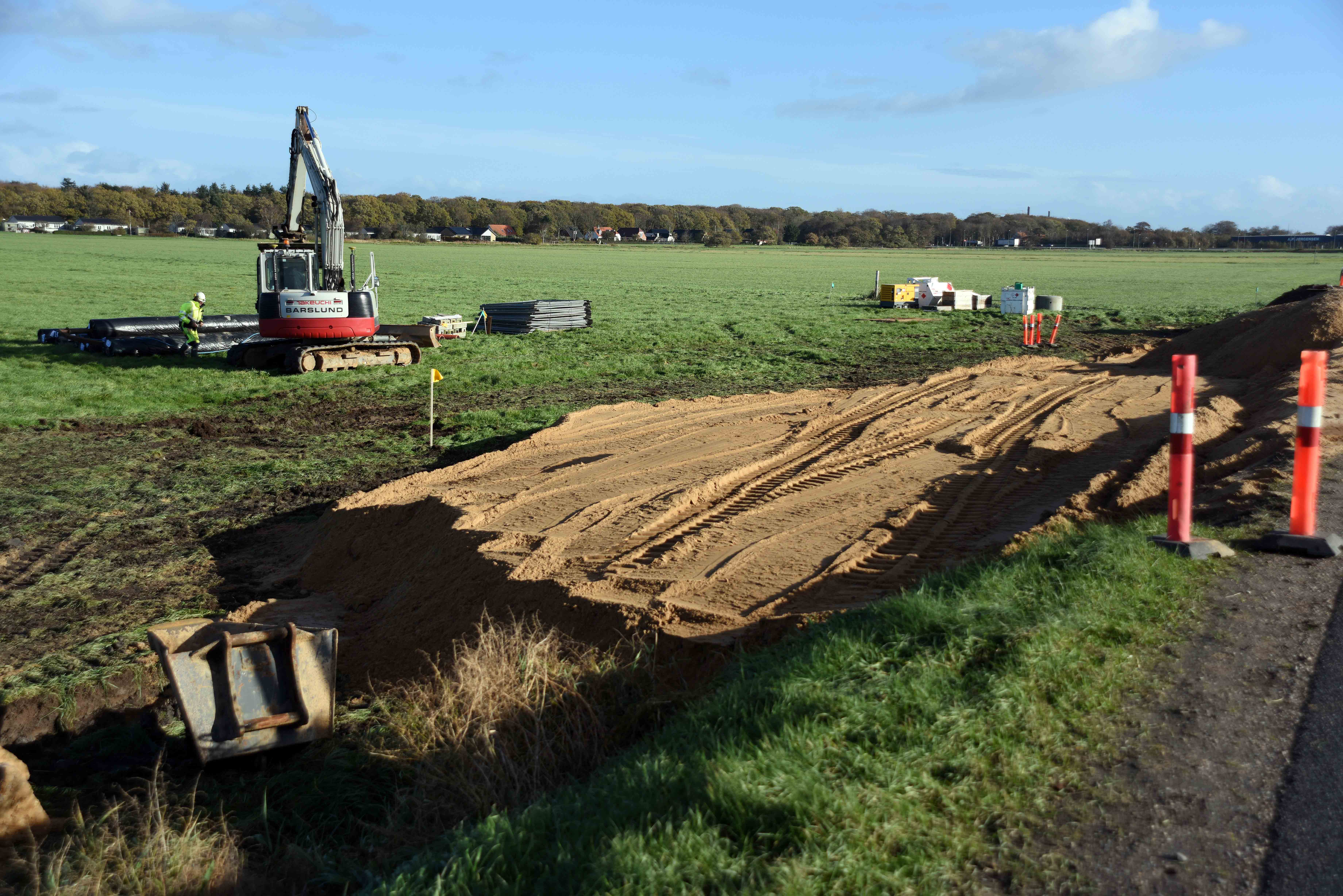 Barslund A/S arbejder frem mod jul med at etablere fundamentet for den midlertidige vej på begge sider af åen. Hensigten er, at ”dæmningen” kan sætte sig hen over vinteren, idet der er en række udfordringer med den bløde marskbund. Senere vil der blive en licitation med asfaltarbejder mm.