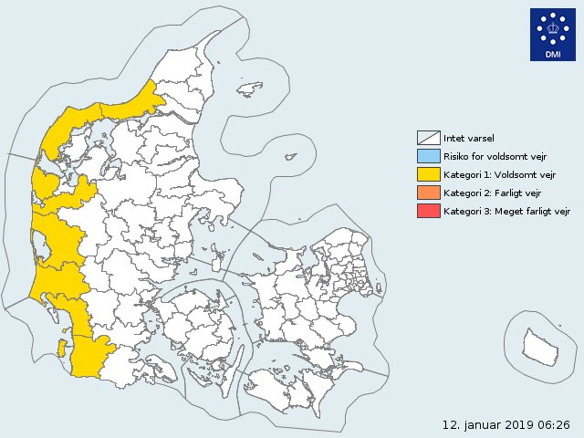 DMI varsel om vindstød af stormstyrke og varsel om forhøjet vandstand