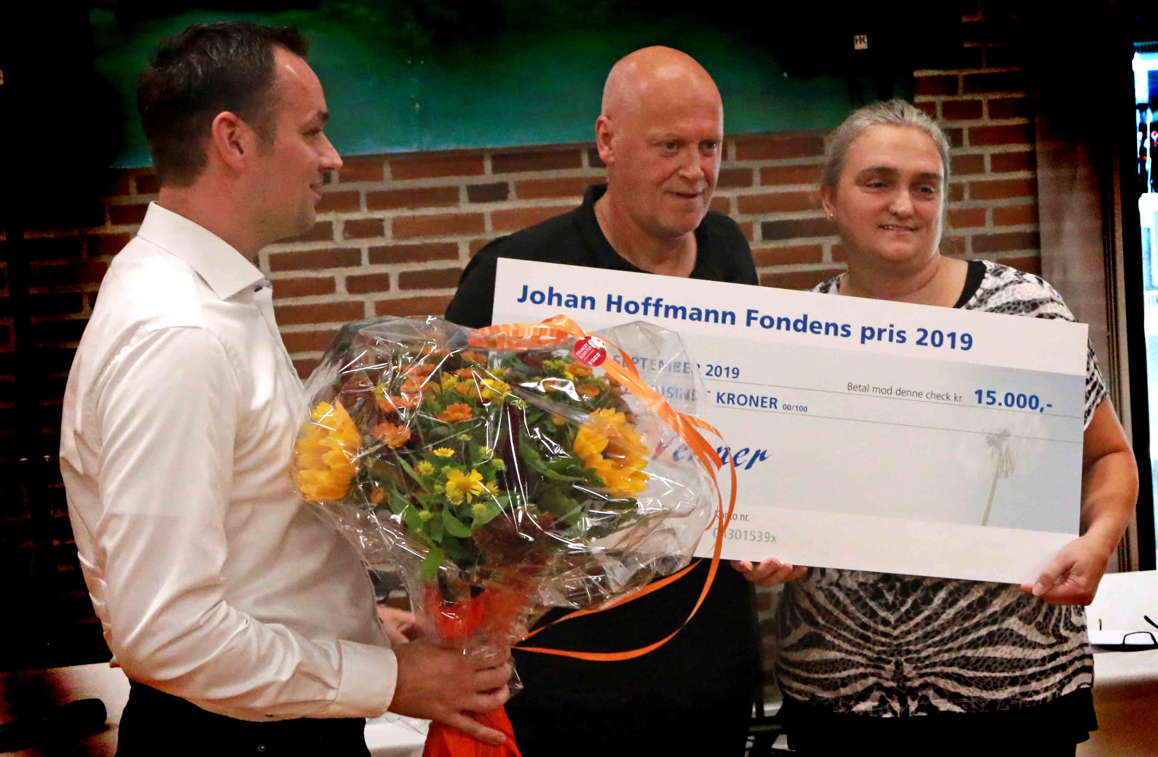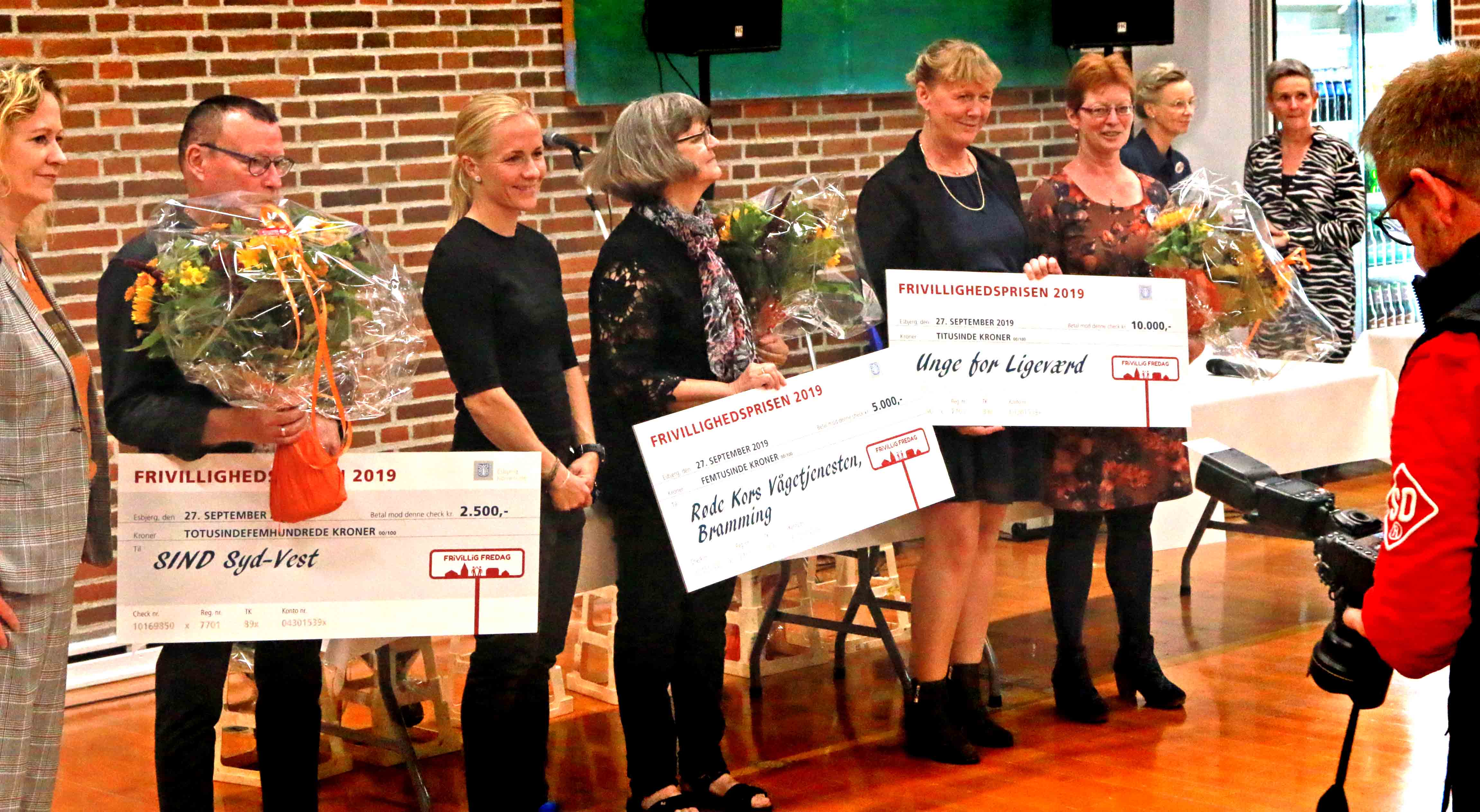 Alle modtagere af frivillighedspriserne fik ud over blomster også en check med sig hjem til det lokale arbejde. Og vi kan lige så godt afsløre, at 1. prisen gik til ”Unge For Ligeværd”, som fik overrakt en check på 10.000 kr af byrådsmedlem Henrik Vallø.