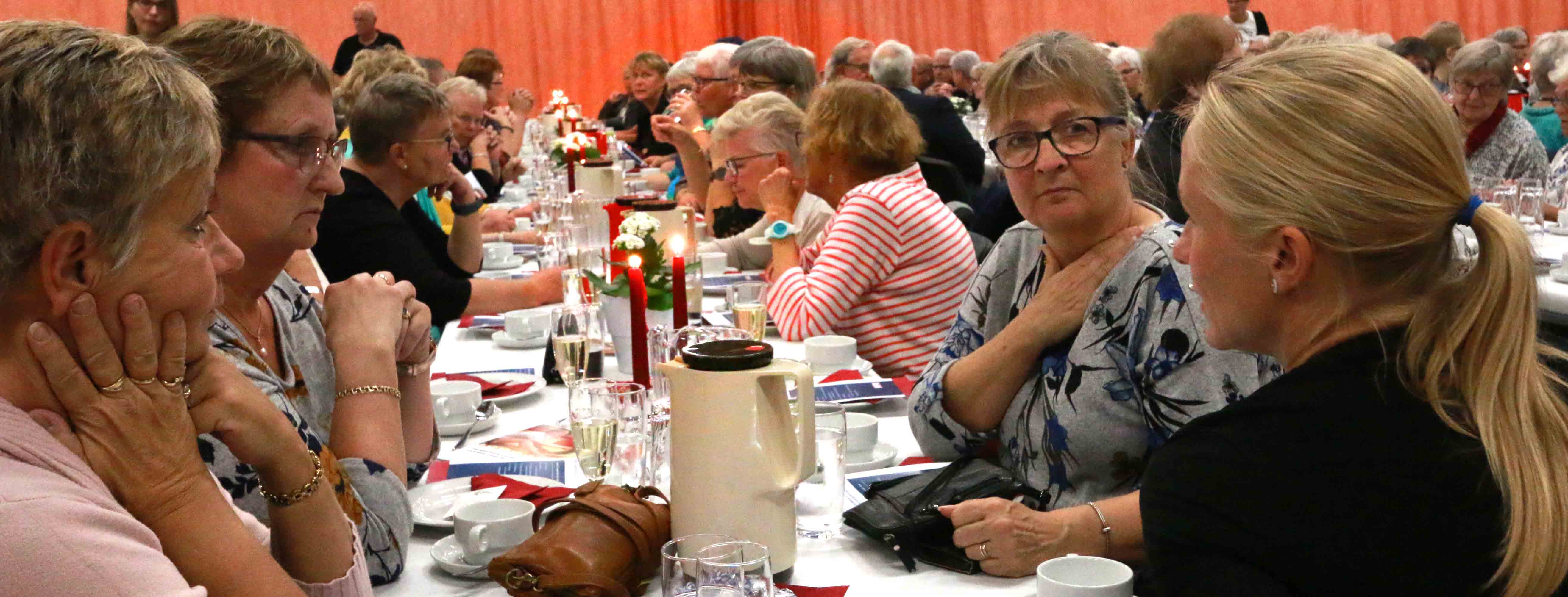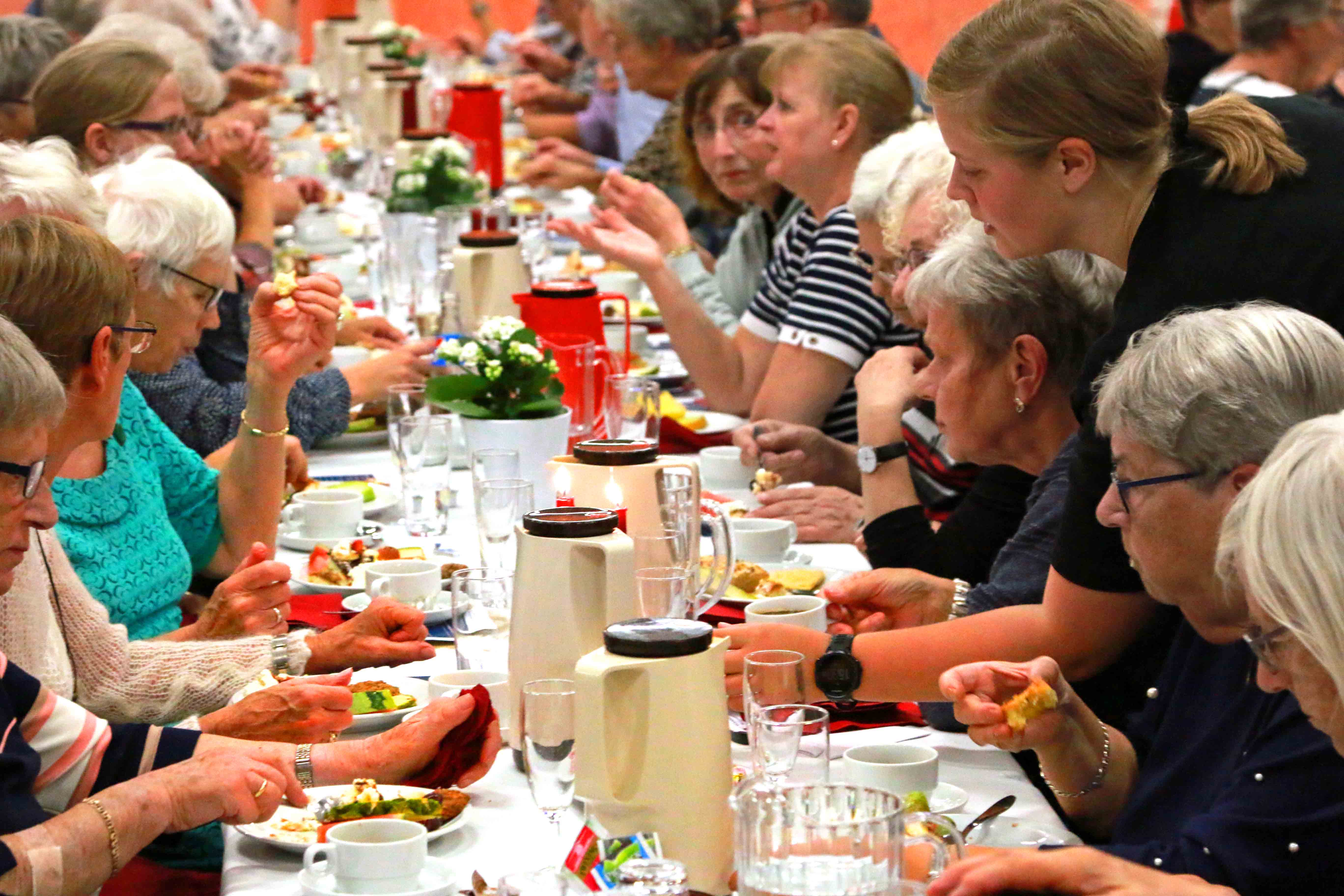 Der blev hygget med det store kagebuffet – og midt under festlighederne måtte stearinlysene pustes ud, da nogle af gæsterne ikke kunne klare lugten heraf