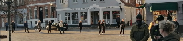 I Ribe var der anderledes ro over rækken og afstand mellem de enkelte, da restauration Porsborg lukkede op for salg af take away mad, fortæller pressefotograf Poul Anker Nielsen.