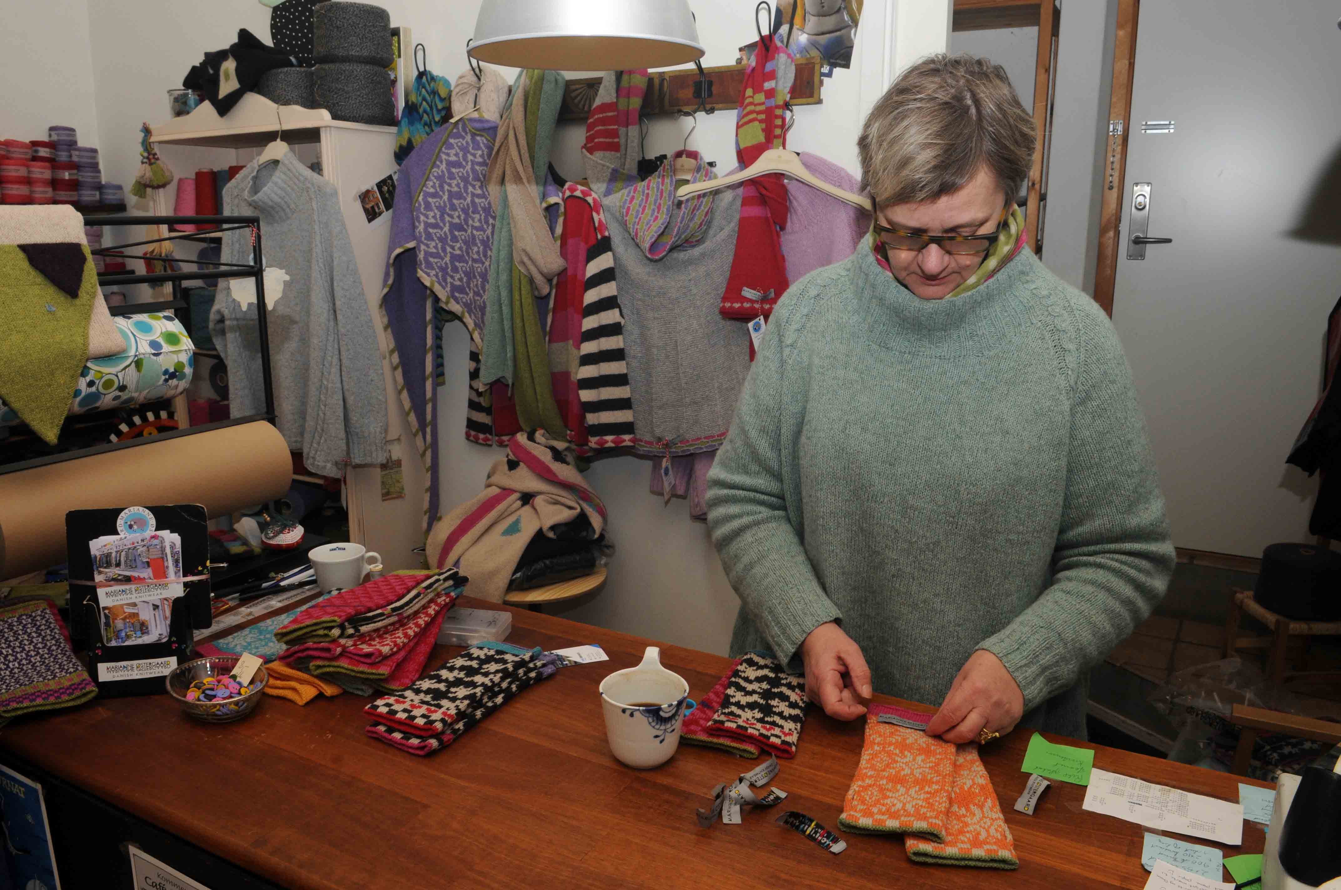 Den gode stemning på Torvet mærkes, Mariannes butik ligger ved siden af Green Living og det hænder, at det gode naboskab fører til kaffe ved de opstillede borde, og Marianne og Danni får lige vendt ”verdenssituationen” – eller i hvert fald det der sker på Torvet. Kommer du ind og gerne vil have en Sarah Lund sweater (Sofie Gråbøl blev verdensberømt for sin flotte sweater i tv-serien ‘Forbrydelsen’) kan du ikke få det her, for Marianne laver ikke kopier, kun egen design, men man kan få alle tænkelige sweatere, og er farven eller størrelsen på den man ser ikke i orden, strikker Marianne blot en ny. Når der er travlhed i firmaet er der hjælp at hente, der er tilknyttet flere damer, der hjælper med strikketøjet. Det er ikke kun i Danmark Mariannes ting er kendte, kunderne er fra Australien, USA, Frankrig, Italien og der er en gros af færdigstrik salg til Norge. En spændende butik, der også besøges af de mange turister der besøger byen.
