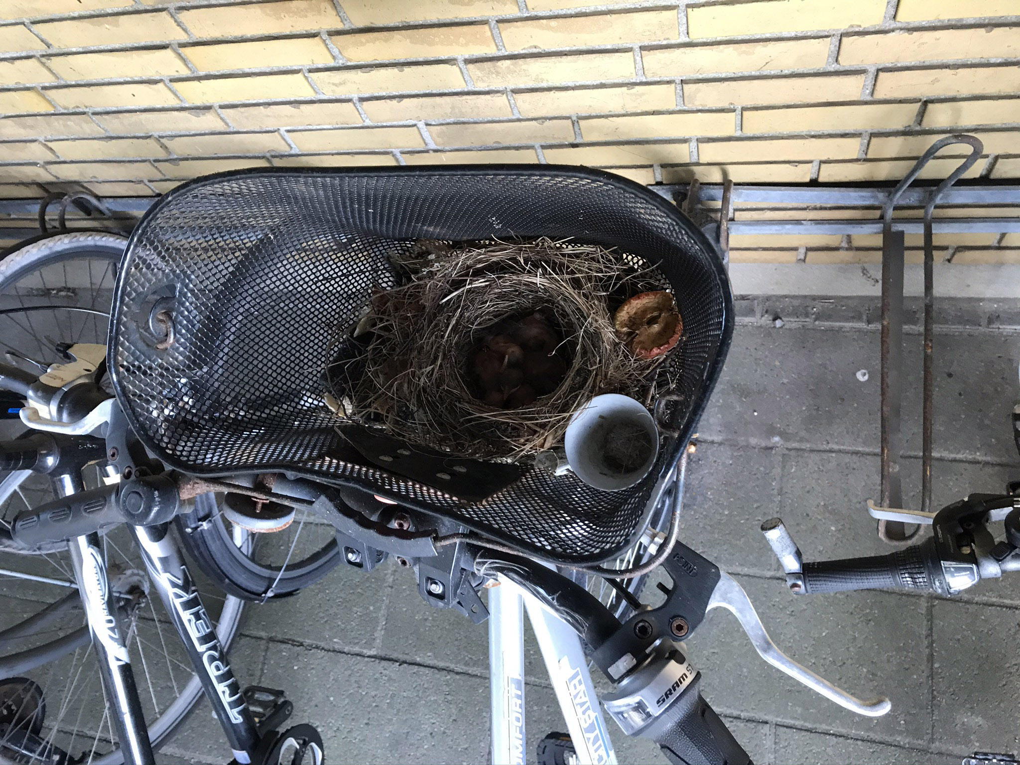 På Seminarievej er der mange lejeboliger i Ribe Boligforening. Det kræver en opskrivning, og så på venteliste. Det gælder bare ikke hvis man er en fugl. Et solsortepar har ved ”de gule blokke” slået sig ned i en cykelkurv, bygget rede, og fået en lille familie på fire unger. ”Udlejeren” er dog ikke Ribe Boligforening, men en beboer – en herre- for det er i herrens cykelkurv reden og ungerne befinder sig. Indtil ungerne er flyvefærdige, må den tålmodige beboer foretage sine indkøb på ”gå-ben”. Så vidt vides, tager cyklens ejer det meget roligt, og mon ikke beboeren fremover får sin cykel i cykelskuret, for solsorte har det med at vende tilbage og bygge rede samme sted, det har andre beboer oplevet.